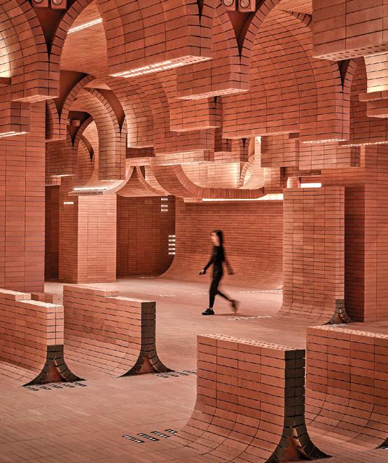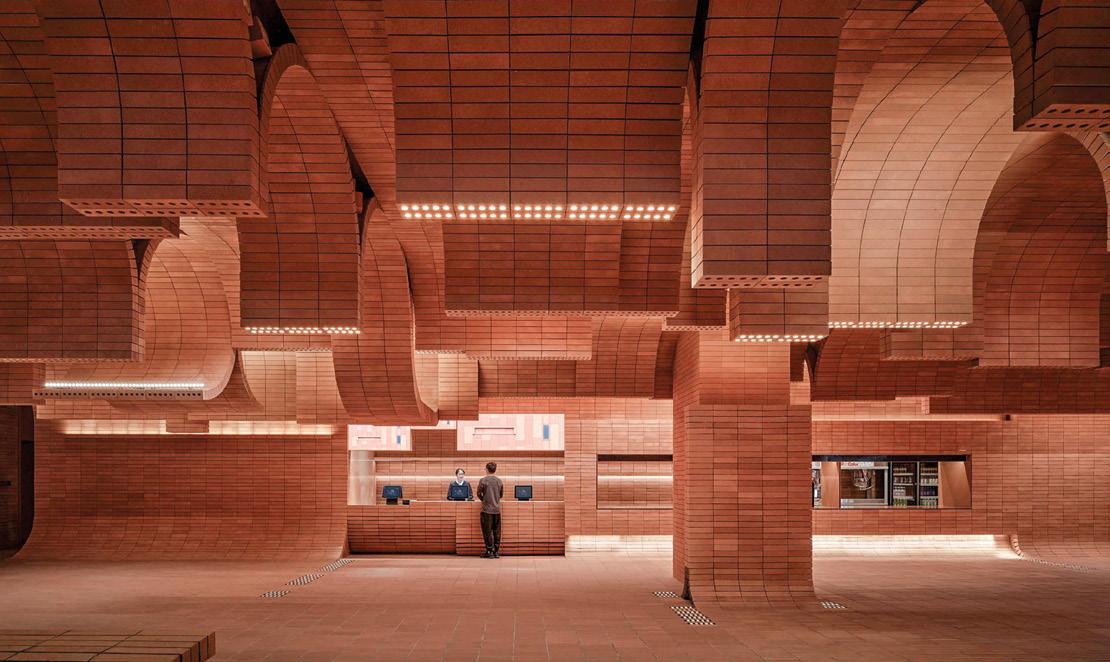Through its use of brick, the Haikou cinema overturns the conventional image of neutral, bare-walled theatres. Boldly sculpted into curved, wavelike forms, the brickwork immerses visitors in an utterly unique ambience, elevating space into narrative architecture. This humble, age-old material becomes a symbol of the sea, transforming an entertainment venue into a cultural and sensory experience in its own right. ◼