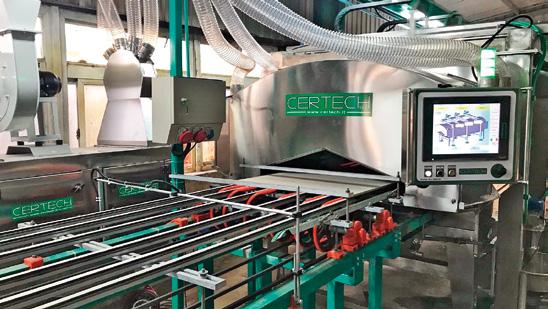 improves wear resistance but also translates into a concrete, quantifiable reduction in plant energy consumption, with a direct and positive impact on production costs. Alongside these linings, Bongioanni continues to develop and refine its flagship machinery, such as the Tecno extruder and the Crono roof tile press , which stand as global benchmarks in terms of reliability, performance and operational continuity. These are complemented by the recent launch of the new Cleandy 3.0 die-washing machine , an evolution of a well-established technology that has been further improved in terms of efficiency, ease of use and integration into modern production plants, bringing direct benefits in terms of reduced machine downtime.