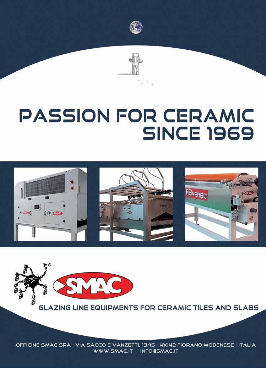 The wait has been over: for one week starting on Monday 26 September, the entire global ceramic industry and market met in the Italian cities of Bolo gna and Rimini. Almost 600 companies and brands have been shown their finest products at Cersaie in Bologna, the most important international exhibi tion of ceramic tile and bathroom furnishings, while a further 300 companies have been exhibited at Tecna in Rimini, the world’s foremost exhibition of technology and supplies for the ceramic industry, after a long four-year wait. Innovation, sustainability, and digitalization. These are the three main keywords that bring together the range of offerings showcased by exhibiting that determined the success of Tecna 2022 - the inter national exhibition dedicated to technologies and supplies for the ceramic and brick industries, organ ized at the Rimini exhibition center by Acimac (as sociation of Italian manufacturers of machinery and equipment for ceramics) and IEG (Italian Exhibition Group).