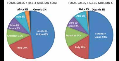 At a global level, the year 2021 brought a sharp re covery in tile production and consumption volumes along with a significant increase in import-export flows following the previous year’s decline. World tile production rose to 18.3 billion sqm (up 7.2% in 2020), with the largest increases reported in the European Union (+18%) and Central and South America (+24.5%). Consumption rose at a similar rate (+6.8%) to 18.2 billion sqm, while global exports increased by 8.7% to 3 billion sqm, around 244 million sqm more than in 2020. This recovery involved all geographical areas. Iran still maintained the position of the fifth pro ducer in the world with a 2% increase in produc tion compared to last year with 458 million square meters and a 2.5% share of global production. This continuous growth of production in the conditions of stagnation of the domestic housing market has been achieved thanks to the export markets and approaching the share of 40% export of the year ly production with the figure of 182 million square meters.The generalized recovery in global produc tion is also reflected in the figures for the individu al major ceramic groups included in the “World Top 25” ranking (published on page 52), driven by the return to pre-pandemic levels, numerous plant in vestments, and several major acquisitions conclud ed last year.