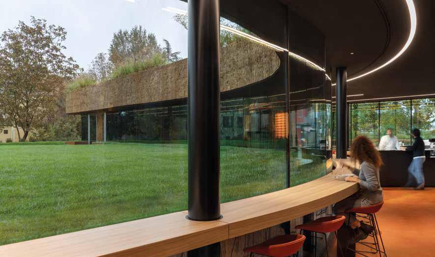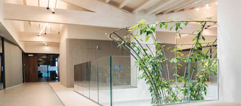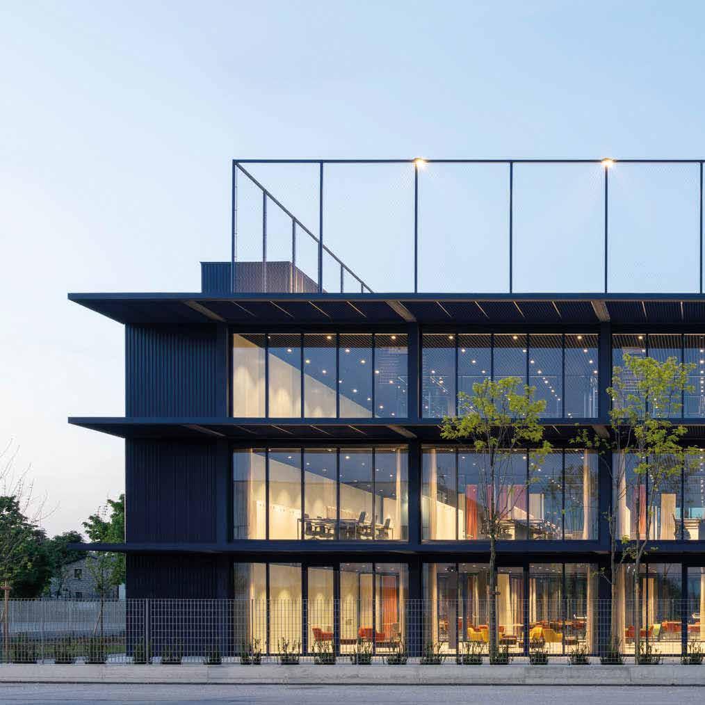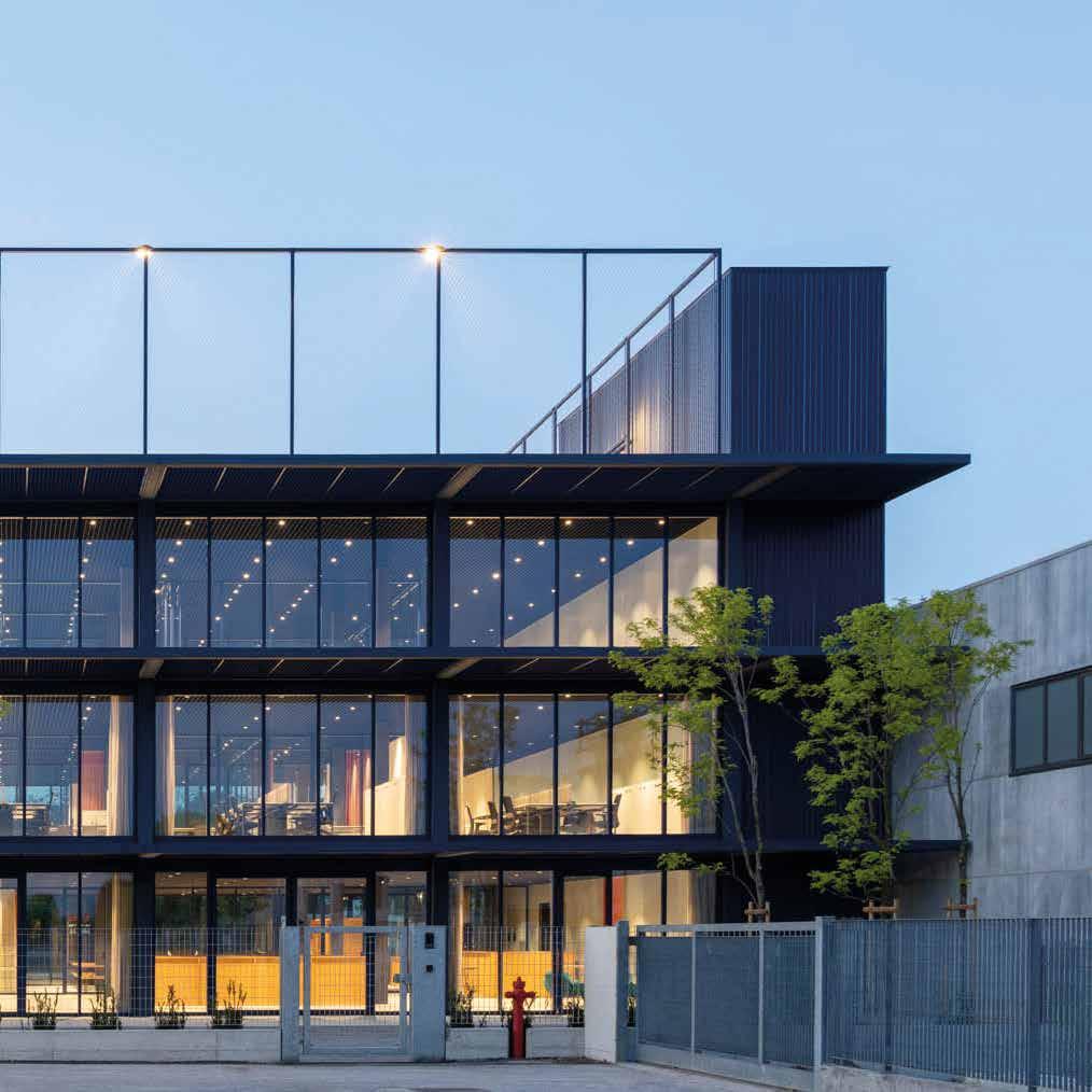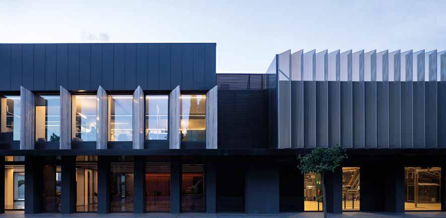 La ventilazione meccanica controllata con recupero di calore contribuisce a mantenere un clima interno confortevole, mentre l’elevata ermeticità dell’edificio (con un risultato di test pari a 2,1 m³/h @50 Pascal) riduce al minimo le dispersioni termiche. Un sistema di raccolta delle acque piovane da 3000 litri alimenta l’irrigazione e gli scarichi di servizio. Inoltre, solo il muro di confine in calcestruzzo è una struttura permanente, mentre le partizioni interne, la facciata in acciaio e la copertura sono progettate per essere facilmente smontate garantendo la possibilità di future modifiche senza impatti significativi. L’edificio presenta infine un indice LCA pari a 600 kg CO e/m², calcolato lungo l’intero ciclo di vita (“cradle to grave”) secondo il protocollo Greenstar (AUS/NZ).