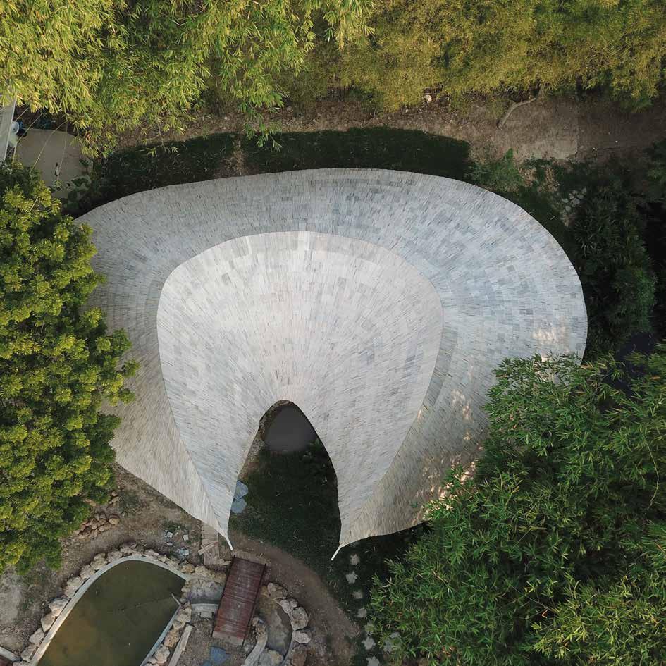 dove a condurre è lo sguardo più che il corpo. Il risultato è un itinerario lungo 40 metri, con un ingresso e due uscite, capace di restituire le torsioni, le rarefazioni e le aperture tipiche di un giardino classico, ma ricondotte alla dimensione interiore: lo sguardo si perde, il cuore si espande. Lo spazio è stato derivato dagli elementi tipici del vicino parco Zuibaichi – cortile, ponte, pozzo e corridoio – reinterpretati attraverso scene, sequenze e atmosfere. La scala viene trasformata: il giardino si solleva da terra fino all’altezza della parte superiore del corpo umano, diventando uno spazio sospeso, accessibile a una sola persona per volta. Dopo diversi prototipi, è stato definito uno spazio passante di appena 64 cm di larghezza per