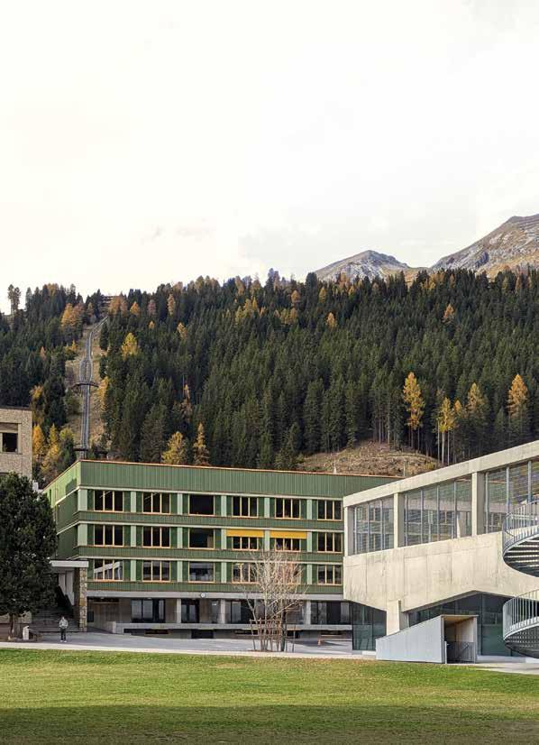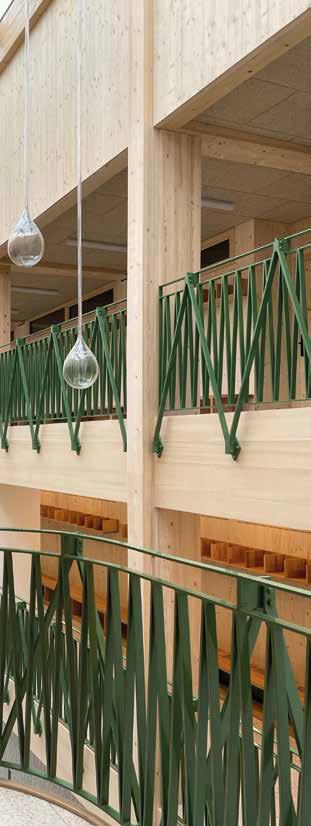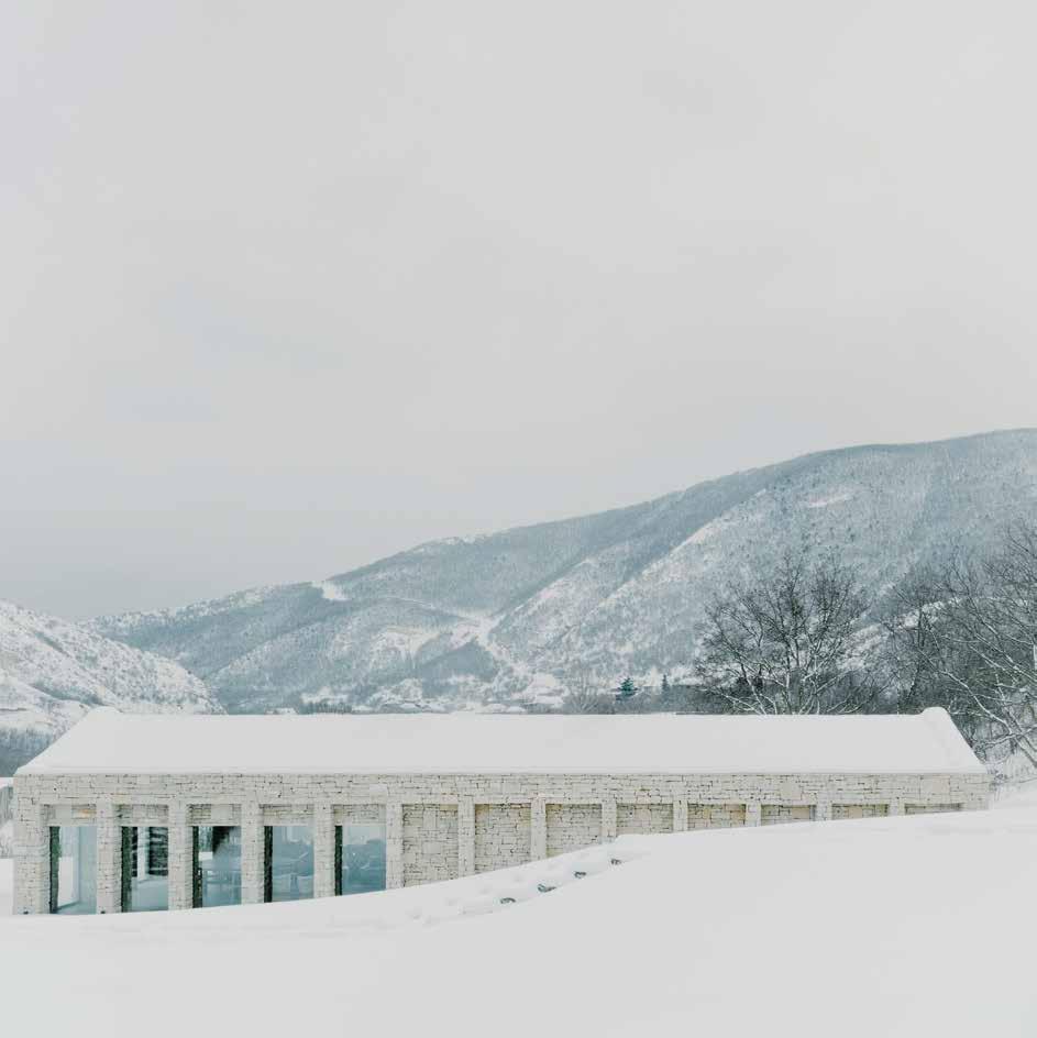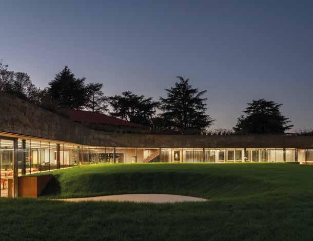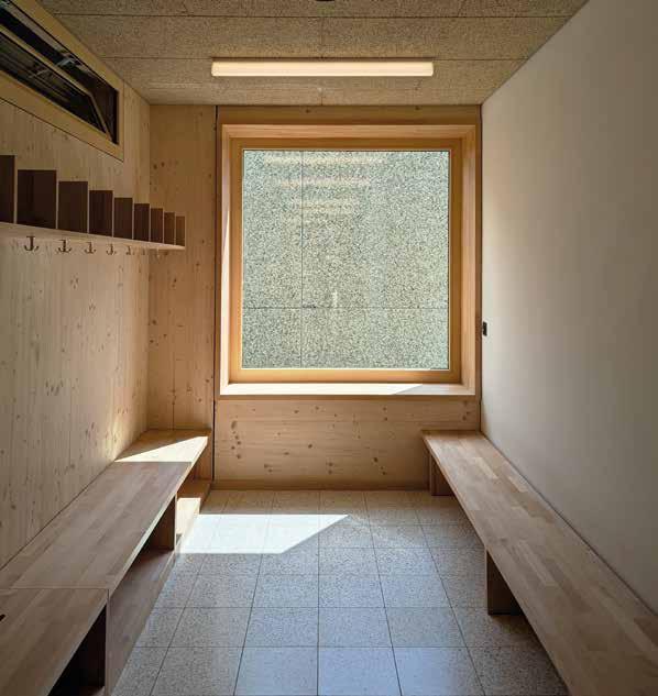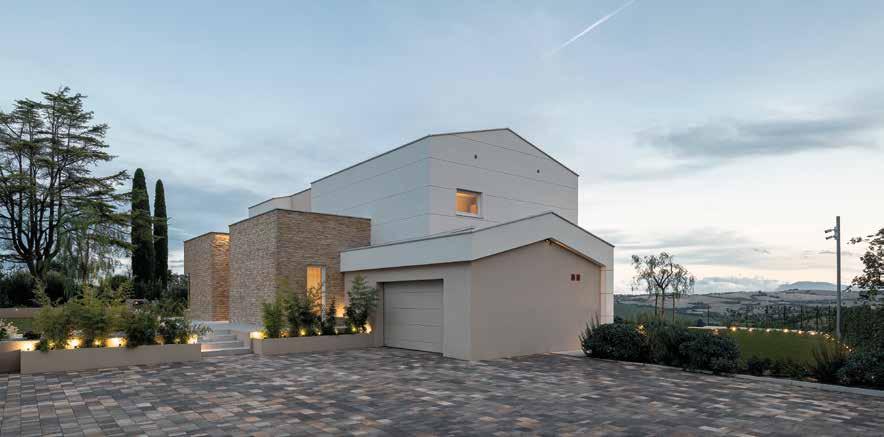 Ogni volume è stato progettato individualmente, creando una composizione dinamica e articolata. Un ampio portico d’ingresso conduce a un cortile soleggiato, collegato a sua volta a un porticato in pietra om-