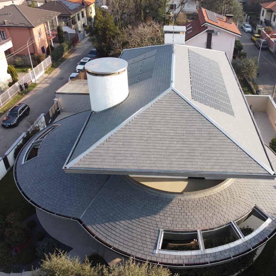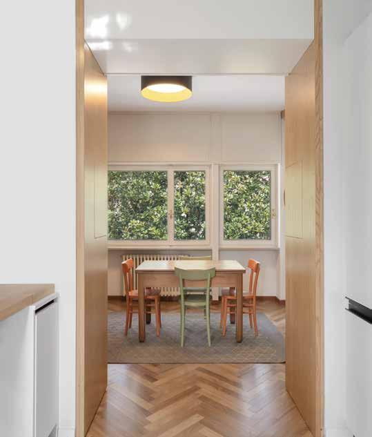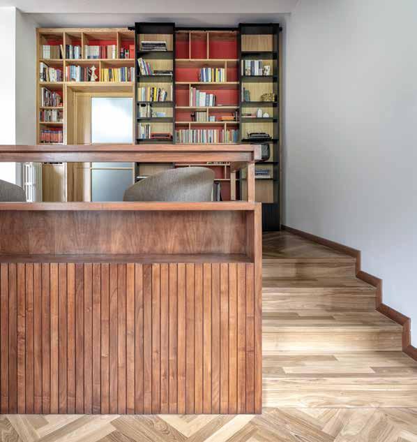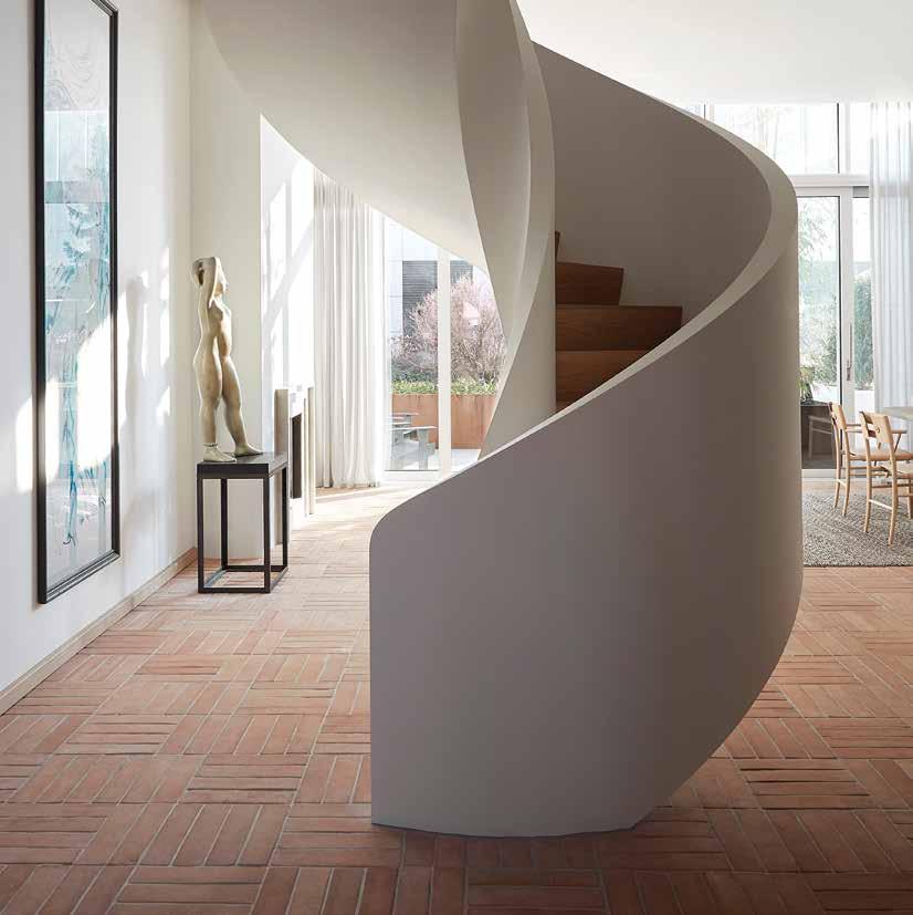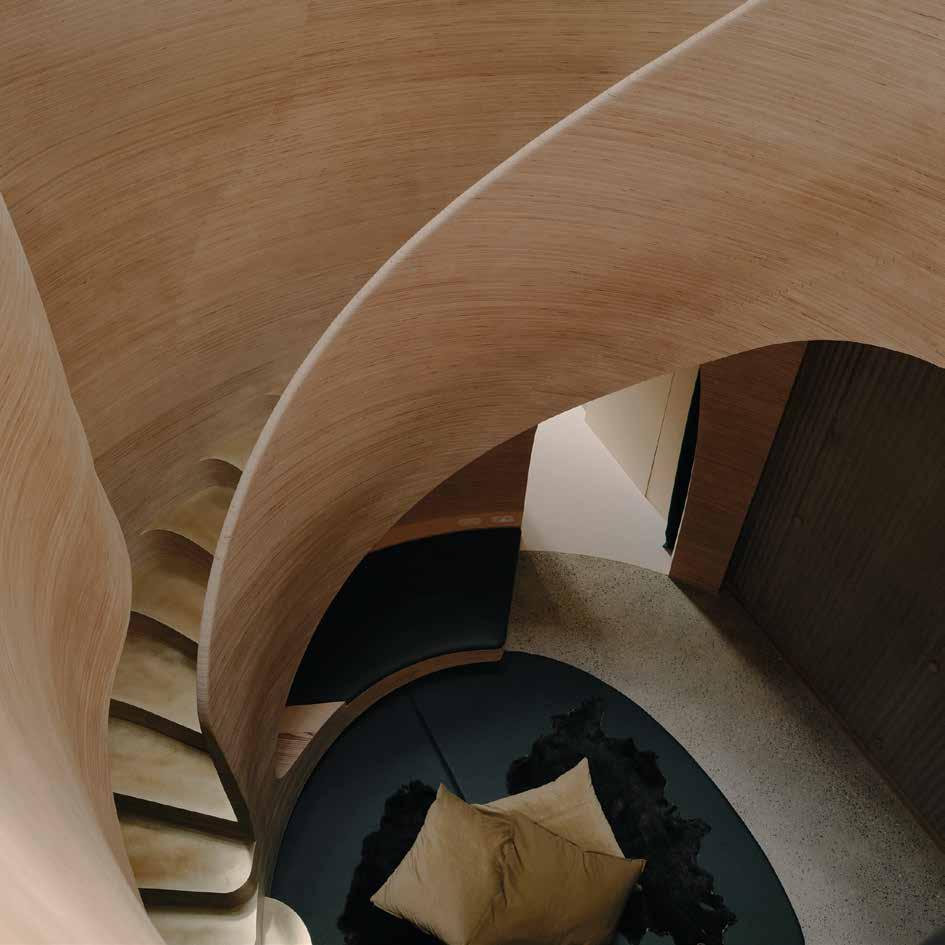 L’intera abitazione è concepita per favorire libertà di movimento e connessione tra aree, con tre diverse scale che eliminano la necessità di corridoi e modellano una conformazione spaziale circolare e avvolgente.