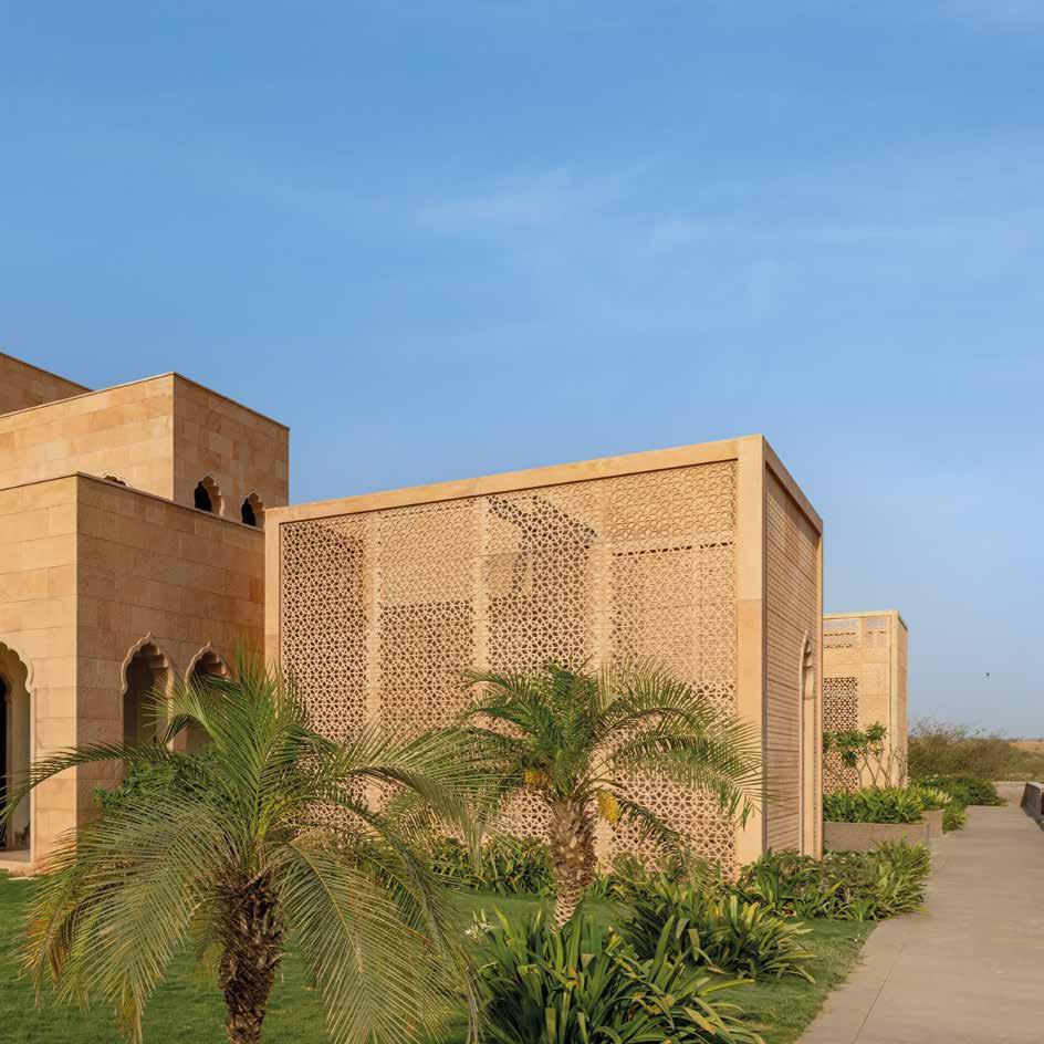 Sviluppata su un’ampia metratura, la casa è caratterizzata da una serie di giardini che collegano armoniosamente gli spazi interni con l’esterno. In questo modo, ogni zona abitata si affaccia su outdoor aperti ma riparati e protetti da pannelli in pietra traforata che, oltre a ridurre il calore, difendono anche l’abitazione dalle frequenti tempeste di sabbia.