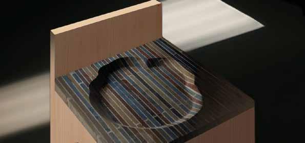 Nella materia Chroma® sono inseriti, come un prezioso intarsio, frammenti geometrici di travertino di diverse forme e dimensioni, così da creare pattern evocativi ma estremamente leggeri e armonici. Chroma® è un materiale nato dalla fusione tra materiali compositi e frammenti di materiali di recupero dall’alto valore estetico e simbolico.
