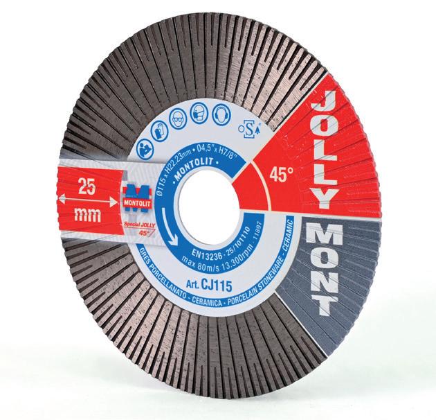 Montolit created the CJ Jollymont blade, available in 115 mm and 125 mm sizes, to meet this need. It’s a high-quality diamond blade made for bevel cuts at 45°, even on very hard and dense porcelain tiles.