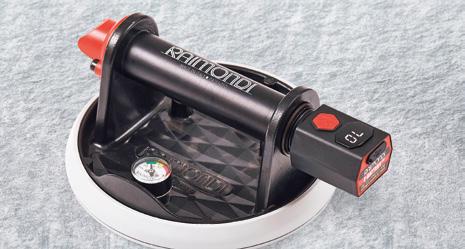 Just push the button and the battery pump creates the vacuum; it stops once the vacuum is reached. In case of vacuum loss, it automatically re-starts and recreates the vacuum, ensuring continuous grip and so maximum safety. When it’s time to release the tile, just push the mechanical dedicated button for instant disengagement.