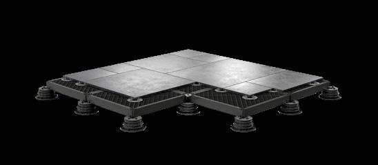 No central pedestal required: the high structural strength eliminates the need for additional reinforcement pedestals, simplifying installation and reducing costs and installation times; Maximum security: protects against injuries in the event of tile breakage; Maximum design freedom: it allows for the installation of tiles of any size or the combination of different types of coverings;