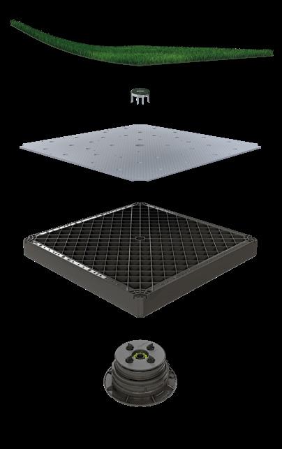 The SUPATURF panel guarantees a smooth and comfortable walking surface. It includes dedicated openings to ensure rapid and effective water outflow. For easy and secure installation, each panel is supplied with dedicated screws for fastening to the ZeroFlex grid, ensuring both structural strength and long-lasting durability.