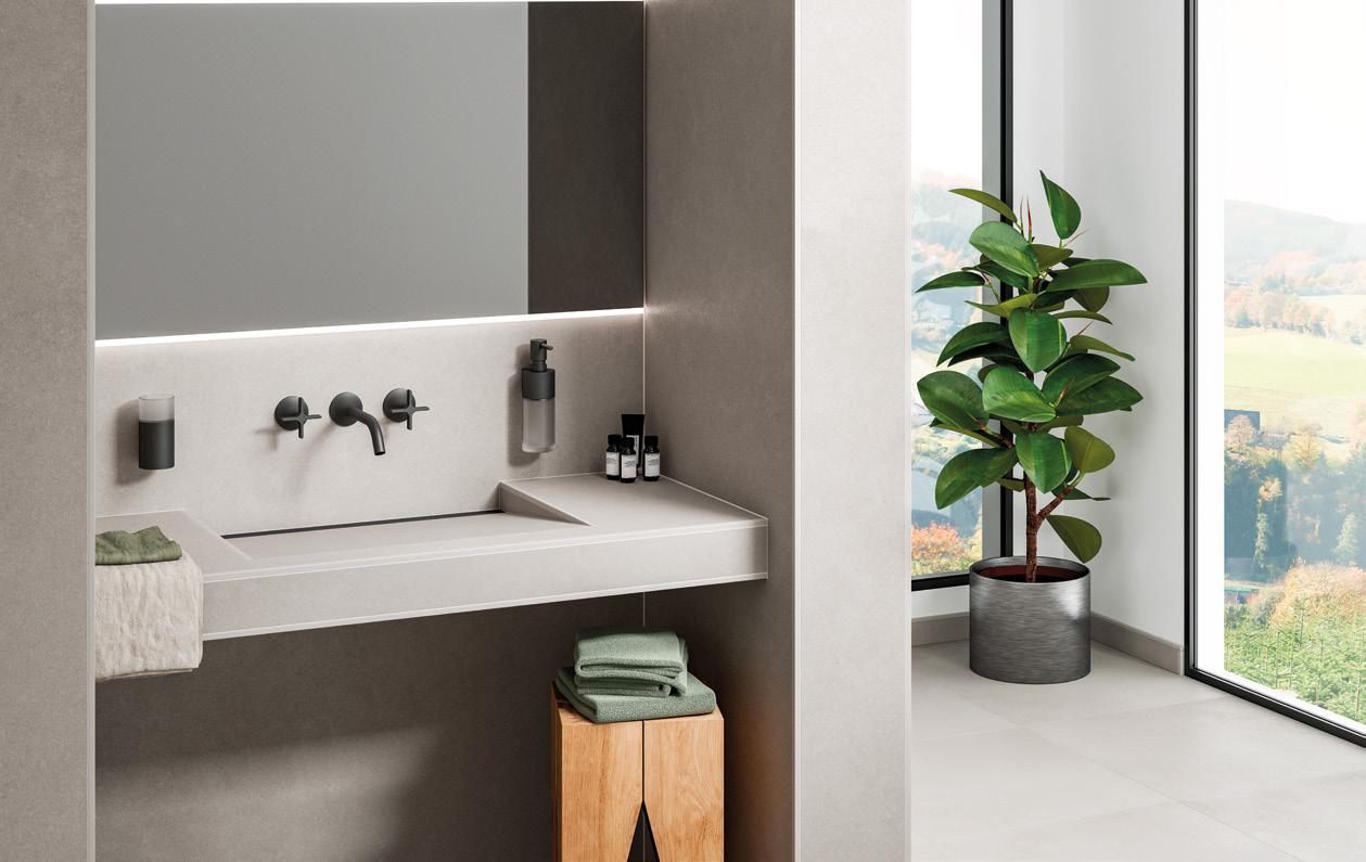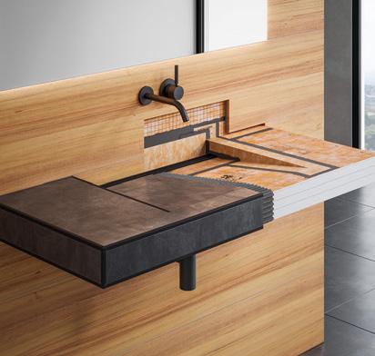 Maximum flexibility and individual design: Schlüter-KERDI-BOARD-W opens up the easiest way to a designer washbasin. The prefabricated element made of KERDI-BOARD is extremely light, can be freely cut to size and can be immediately covered with tiles. The set includes all relevant waterproofing components, the connection thread for traps and offers KERDI-LINE-VARIO drainage profiles a perfect fit. The Schlüter washbasin is suitable for installation in niches or wall ceilings and allows free-floating installation with wall brackets. schluter.com