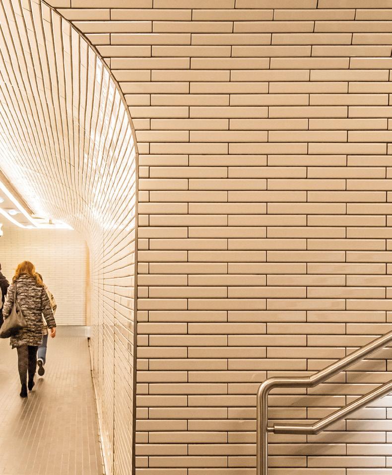 the same across the entire structure, their thickness varies to create an effect of light and shade depending on where you are standing. The result is a façade that seems to change colour: the quality of light at different times of day, as well as the different angles from which