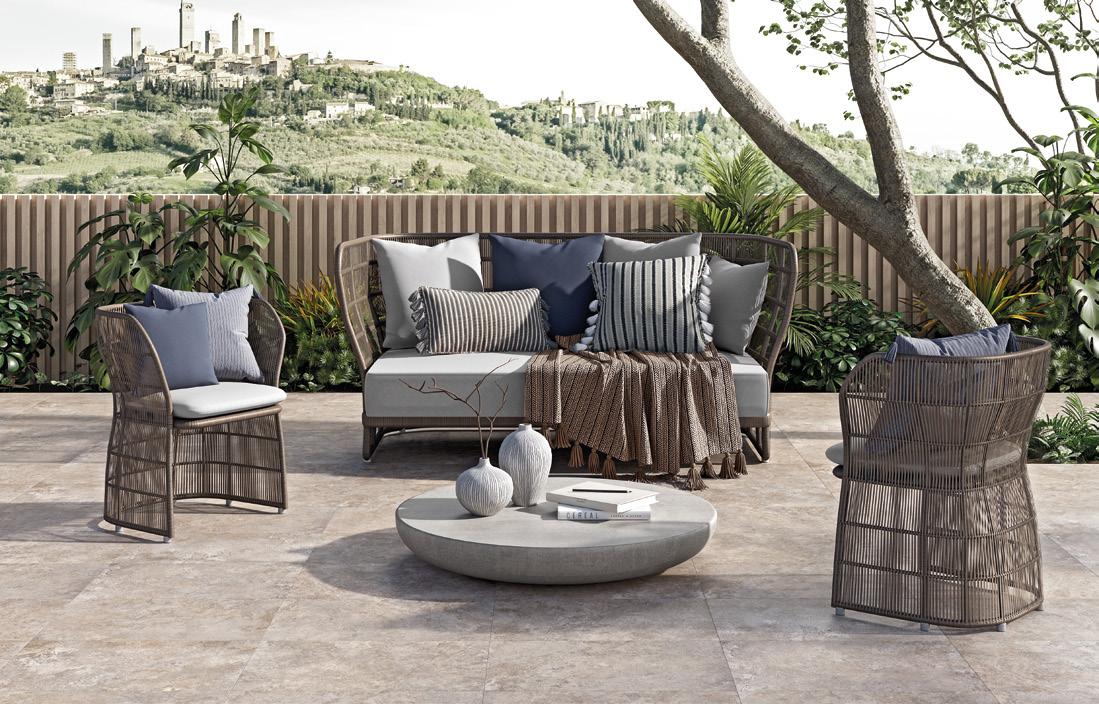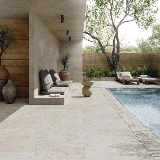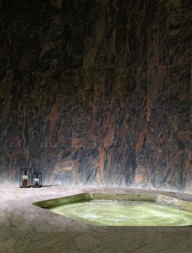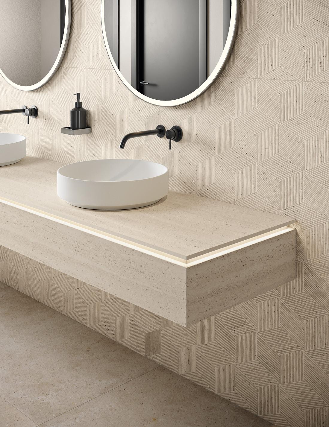 The TEXTURES+ collection revolves around a broad and sophisticated range of natural stones in a selection of highly specific finishes, produced by means of innovative processing techniques. Tactility is the most distinctive feature of this line-up of stones, which combine aesthetics, functionality and high performance. The main textures used in the collection include SAFE finish, which was spawned by the need to use natural stone in wet environments, such as pool-surrounds, spas and wellness centres, where complying with non-slip requirements is imperative. The product’s technical prowess lies in the regular ripples carved into it, which minimise the risk of slips and falls, while remaining imperceptible. The natural stones treated with SAFE finish have certified performance characteristics that meet the most stringent European standards, without compromising on their outstanding beauty. HYDRO finish, meanwhile, is a deeply appealing, ancestral finish obtained by using high-pressure, high-speed water jets to sculpt unprecedented textures into the stones. Ideally suited to vertical surfaces, its design showcases a delicately irregular and evocative spirit. FLEXWAVE finish makes clever use of undulating engravings to give its surfaces a three-dimensional quality. It also harnesses the power of geometry to create optical illusions, such as a mosaic effect and a furrowed effect.