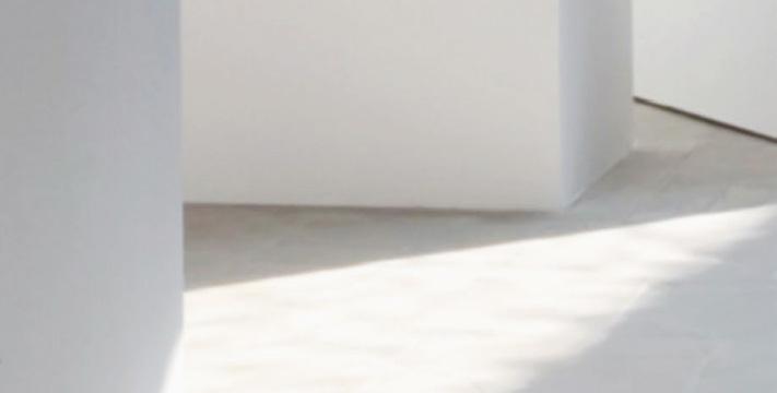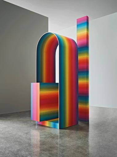 rant, whose centrepiece is a large white space punctuated by three imaginary “blue windows” facing the Mediterranean Sea: one sculptural, one pictorial and one textile. Each was produced with the collaboration