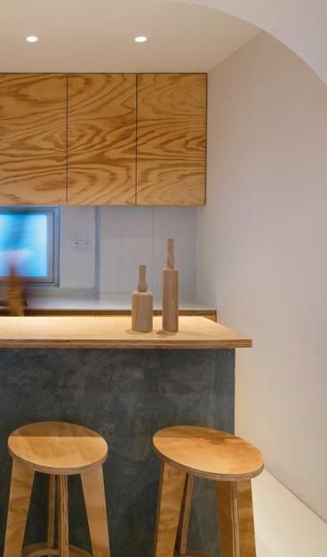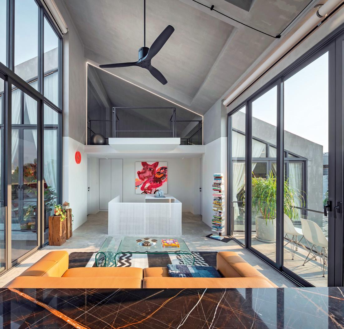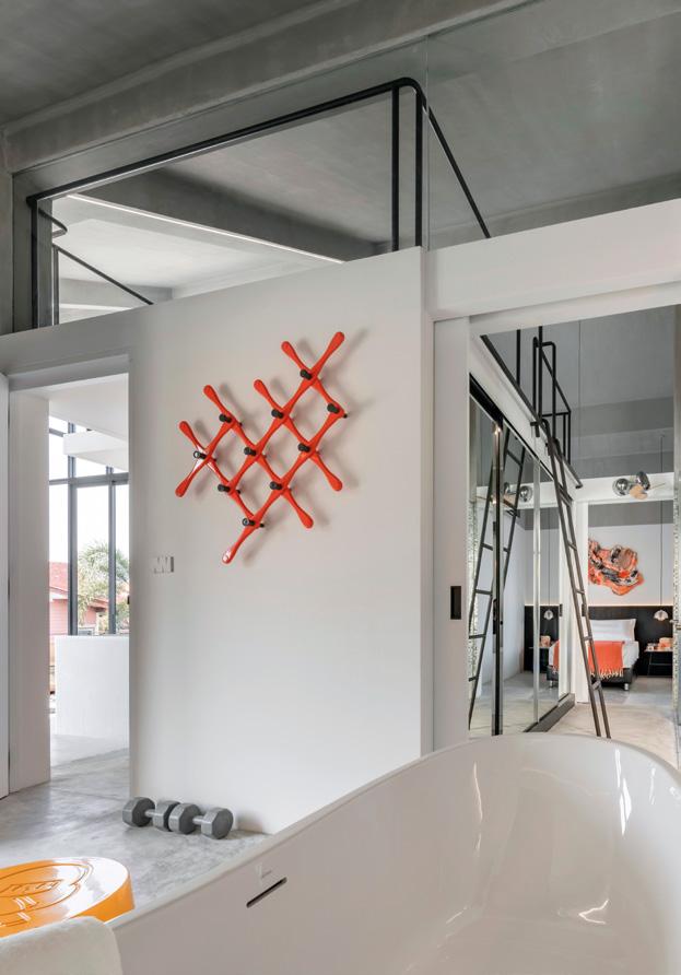 The interior style focuses on a few pieces of furniture, not only for flexibility, but also to accommodate the owner’s need to control the construction budget. The designer ensured the continuity of the architecture and interiors by exposing surfaces, walls, and ceilings, with bare mortar and only white painted walls applied up to the height range of the occupants to create a sense of visual comfort. To add an interesting dimension, the owners can hang decorations from the homeowner’s personal collection: paintings, chairs, lamps, hooks, clocks, works of art, etc. These items can be adjusted and moved, increasing and decreasing in presence at any time. 5