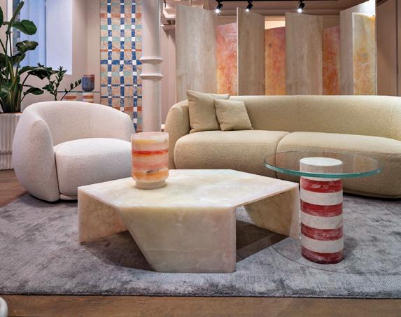 The new Aquarel collection designed by Patricia Urquiola for Budri is the result of an unusual symbiosis between Classical Roman Travertine and Iranian White Onyx. Ploughing its own distinct furrow, it pairs a material that is widely used in architecture for its strength and durability, with the delicate transparency of White Onyx, expressed through a painterly, contemporary language.
