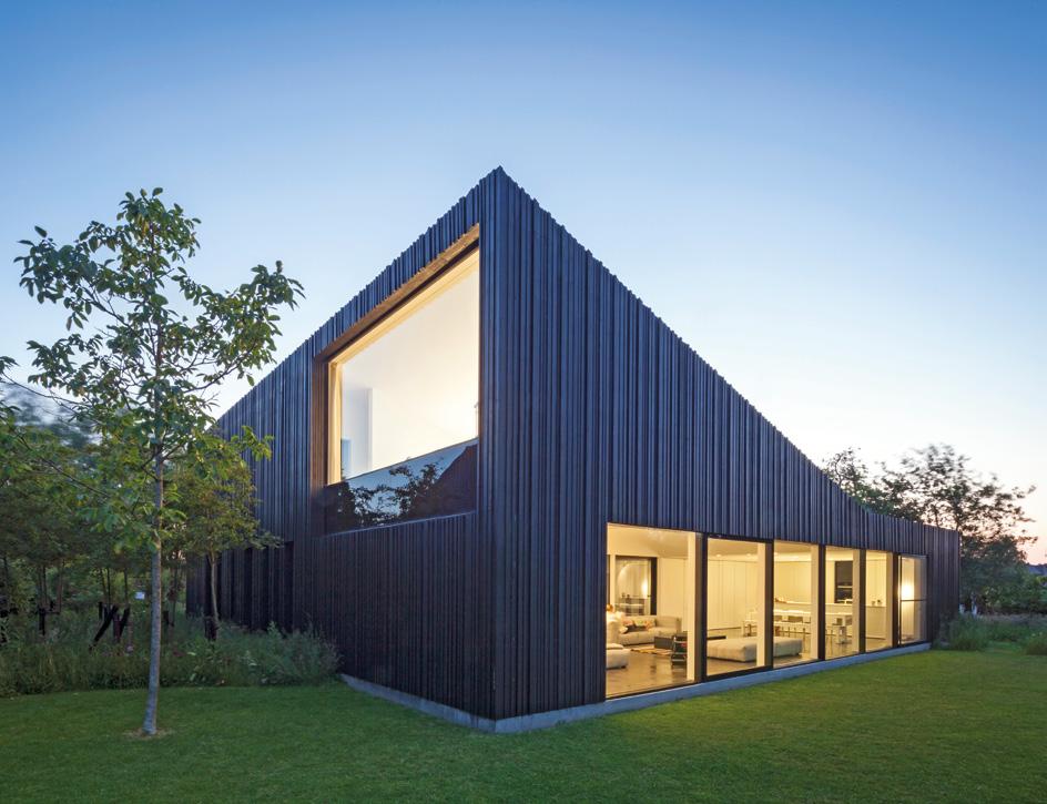 Distinctive geometries, large windows and an intelligent approach to the choice and juxtaposition of materials are the hallmark of this detached home designed by Bruno Vanbesien