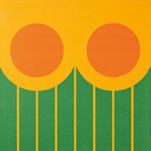 The alternating juxtaposition of contrasting colours – mainly yellow, lilac and purple – also gives the carpet a sense of tactility, based on the appearance of three-dimensionality.