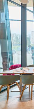 Given the lack of scenery in the surrounding environment, the designers decided to create an inward view and to create an interesting private garden, which led to the idea of the enclosed courtyard space. Only a few viewing frames are opened on the south wall. In addition to the blue sky and white clouds, the chaos and noise are isolated by the wall. The large glass windows of the building actively introduce the scenery and light into the building, which becomes a part of the indoor space experience.