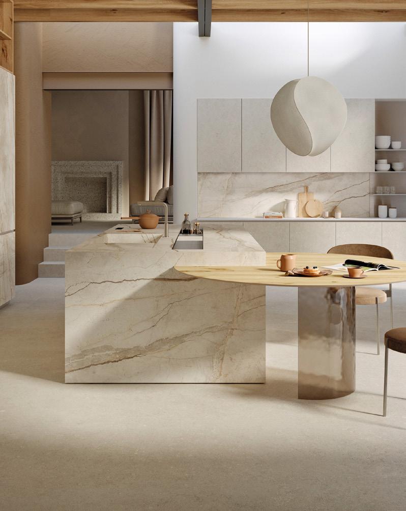 Texture materiche che richiamano pietra, cemento, legno e metalli che si combinano con una varietà di colori innovativi, creando finiture per pavimenti e rivestimenti che arricchiscono ogni spazio con nuove sfumature estetiche ed emozionali.