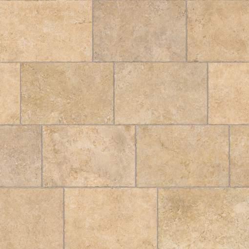 Das authentische Gefühl eines Bodens aus einem von Stein inspirierten Material mit antikisierten Kanten wird durch die Installation in mehreren Formaten mit vielen Farbvariationen verstärkt.