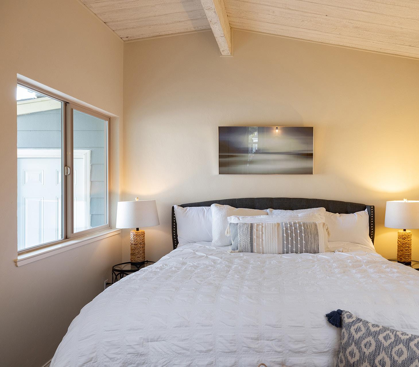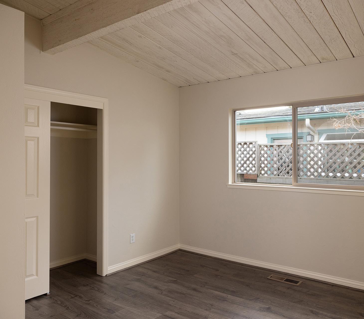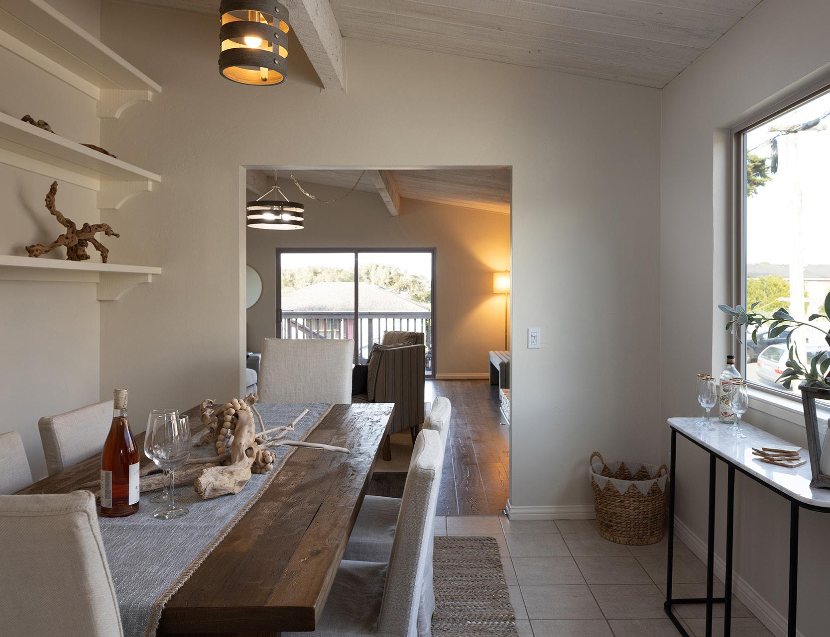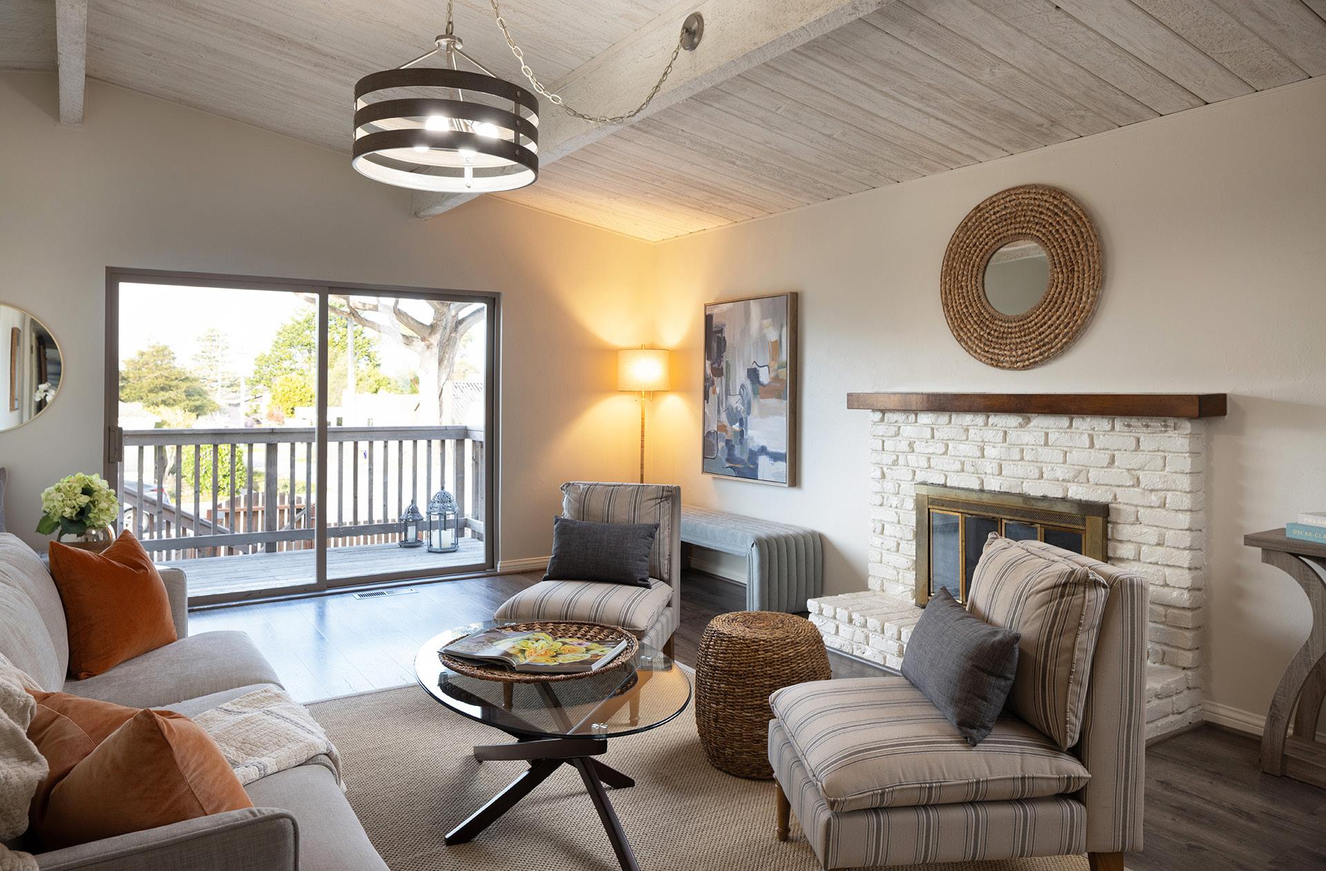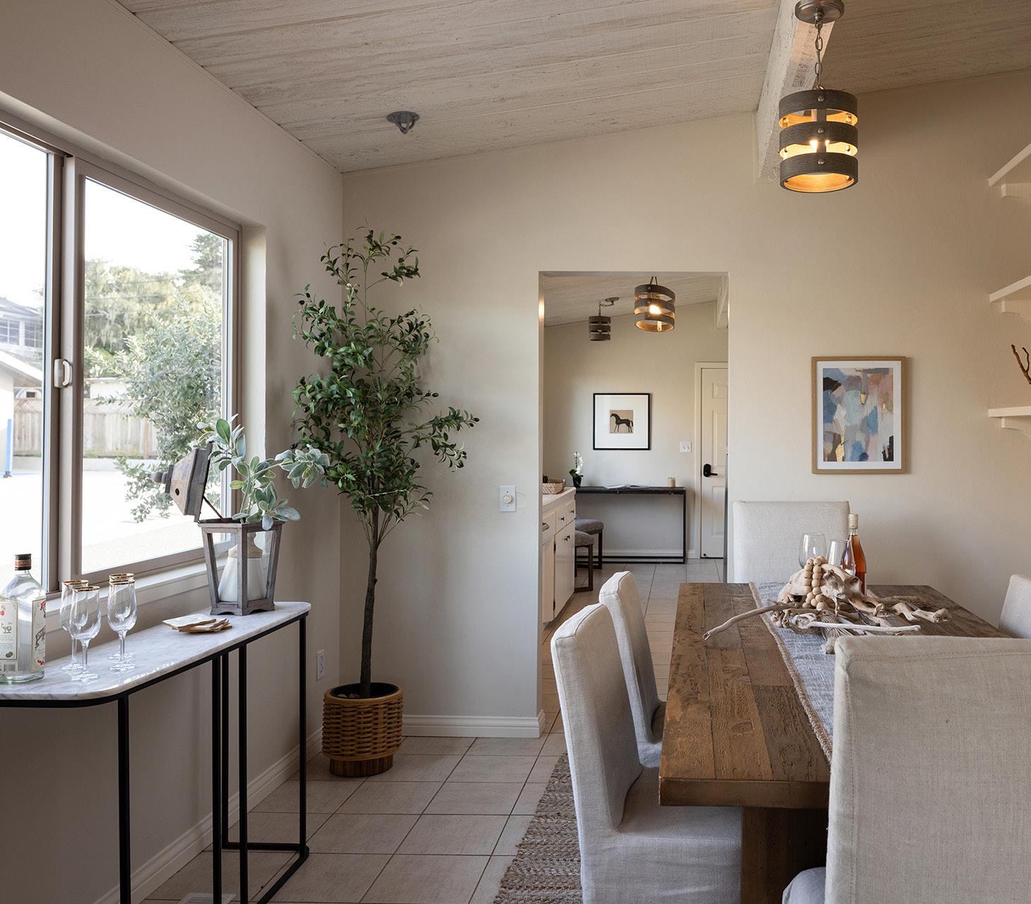 This charming single-level residence is set in a desirable, centrally located Pacific Grove neighborhood, just minutes from downtown, local schools, and the coastline. The 1,378 square foot layout includes three bedrooms and two bathrooms arranged with an easy, natural flow. Wood-laminate flooring runs throughout the main living areas, while the living room is highlighted by vaulted, open-beam ceilings and a wood-burning fireplace with a gas starter. Recent updates include fresh interior paint, a remodeled hall bathroom, and a newer composition shingle roof. The 4,100 square foot lot features an oversized detached two-car garage with ample space for storage or a workshop, along with a backyard deck for outdoor enjoyment. This is a well-maintained home in a location that captures the best of Pacific Grove living.