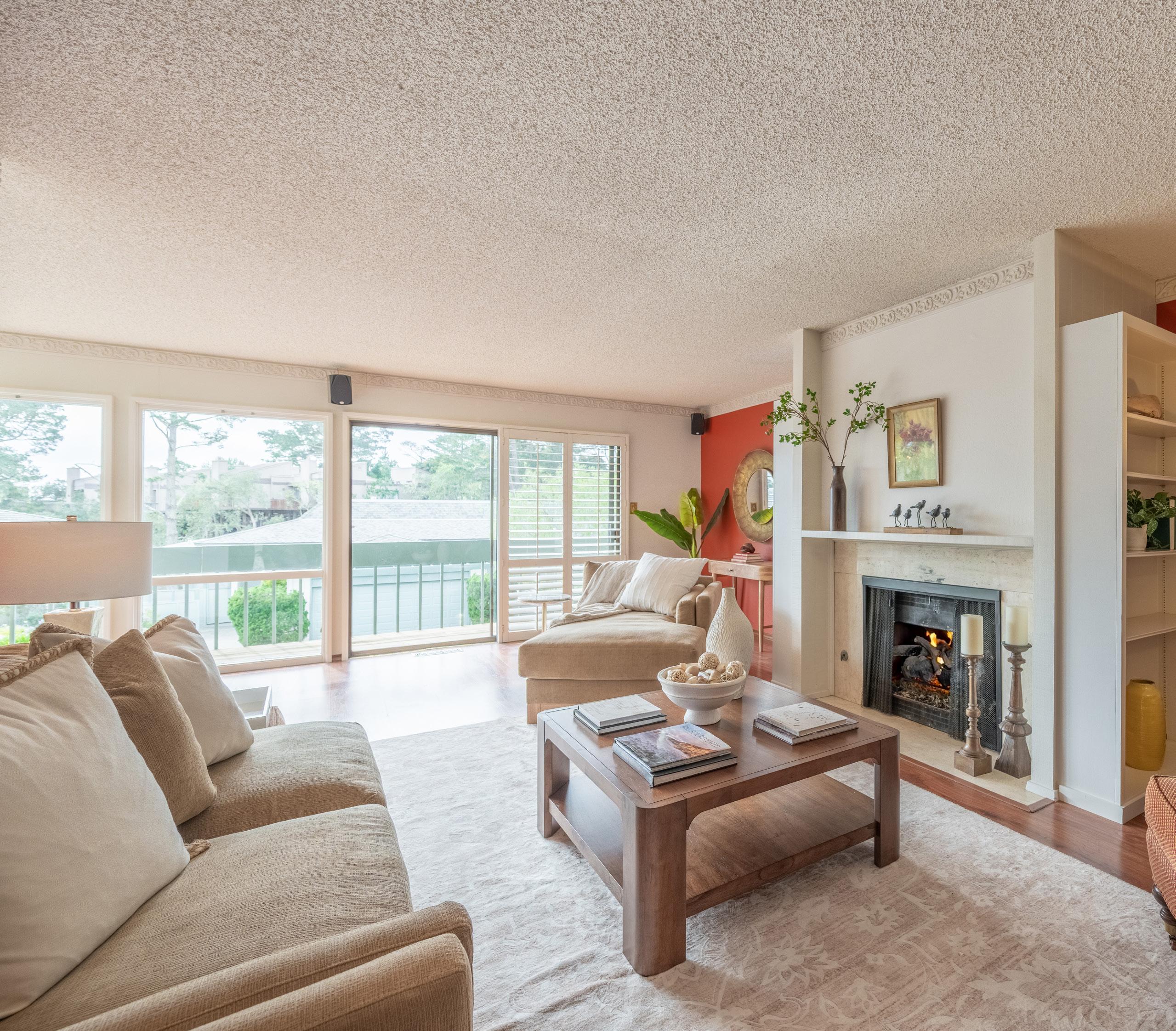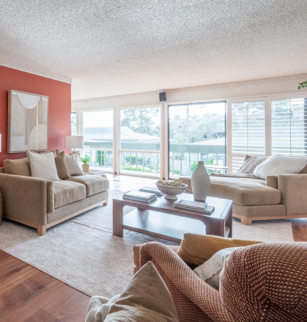 Located in the peaceful High Meadow Lane community just minutes from downtown Carmel-by-the-Sea, 83 High Meadow Lane offers 3 bedrooms, 3 bathrooms, and approximately 1,983 sq ft of light-filled living space. The living room features a cozy gas log fireplace and floorto-ceiling windows, with sliding glass doors opening to a balcony. The kitchen includes a breakfast nook with a pass-through window and flows seamlessly into the dining area. The main-level primary suite features generous closet space and a private patio, with a second en suite bedroom also on the main floor. Downstairs, a third bedroom suite with its own patio, plus a laundry room and two-car garage, complete the home. Just steps away is the community’s heated pool, providing relaxation and recreation. Conveniently located between Carmel-bythe-Sea, Monterey, and Pebble Beach, this charming residence enjoys quick access to the ocean, scenic hiking trails, and endless activities.