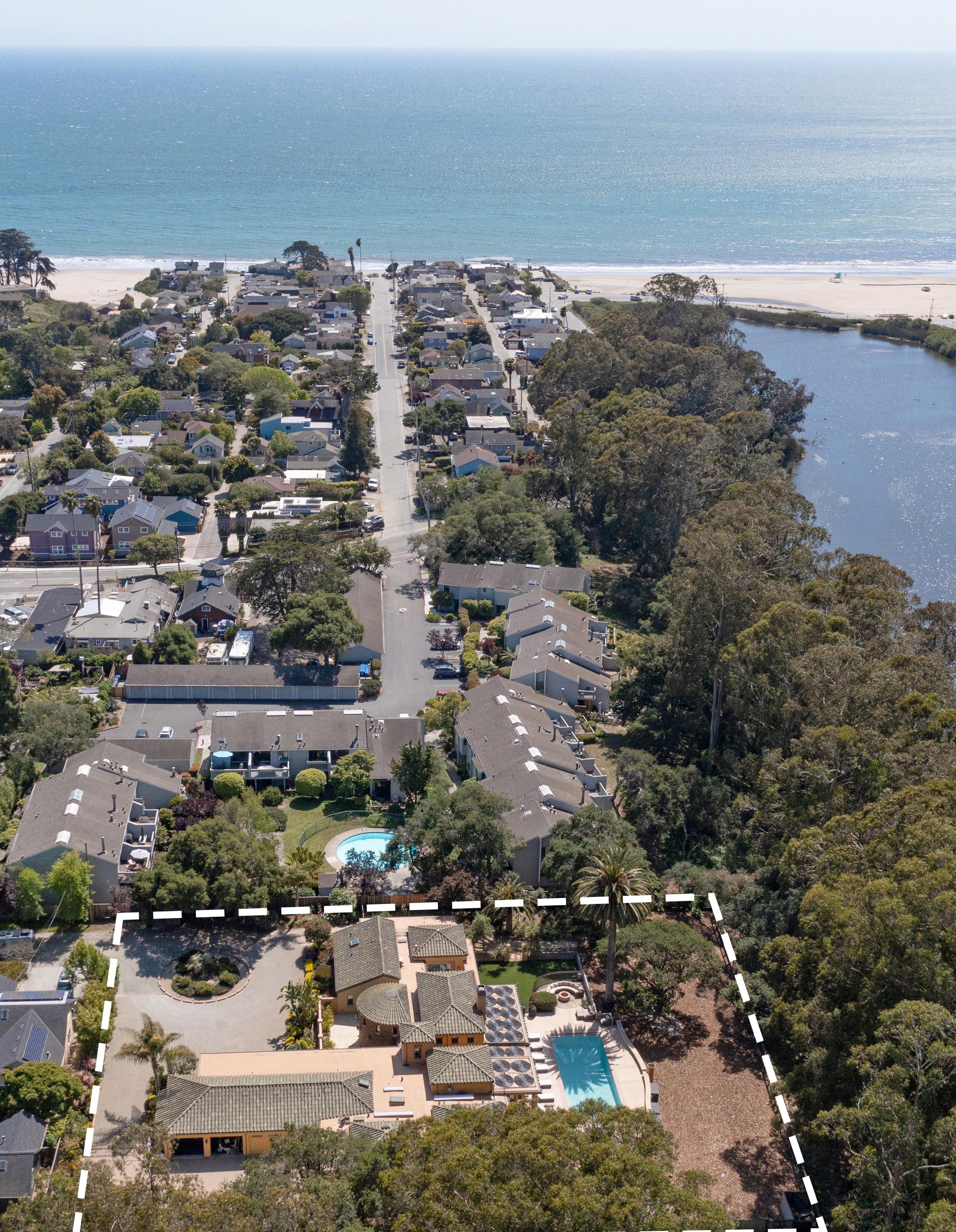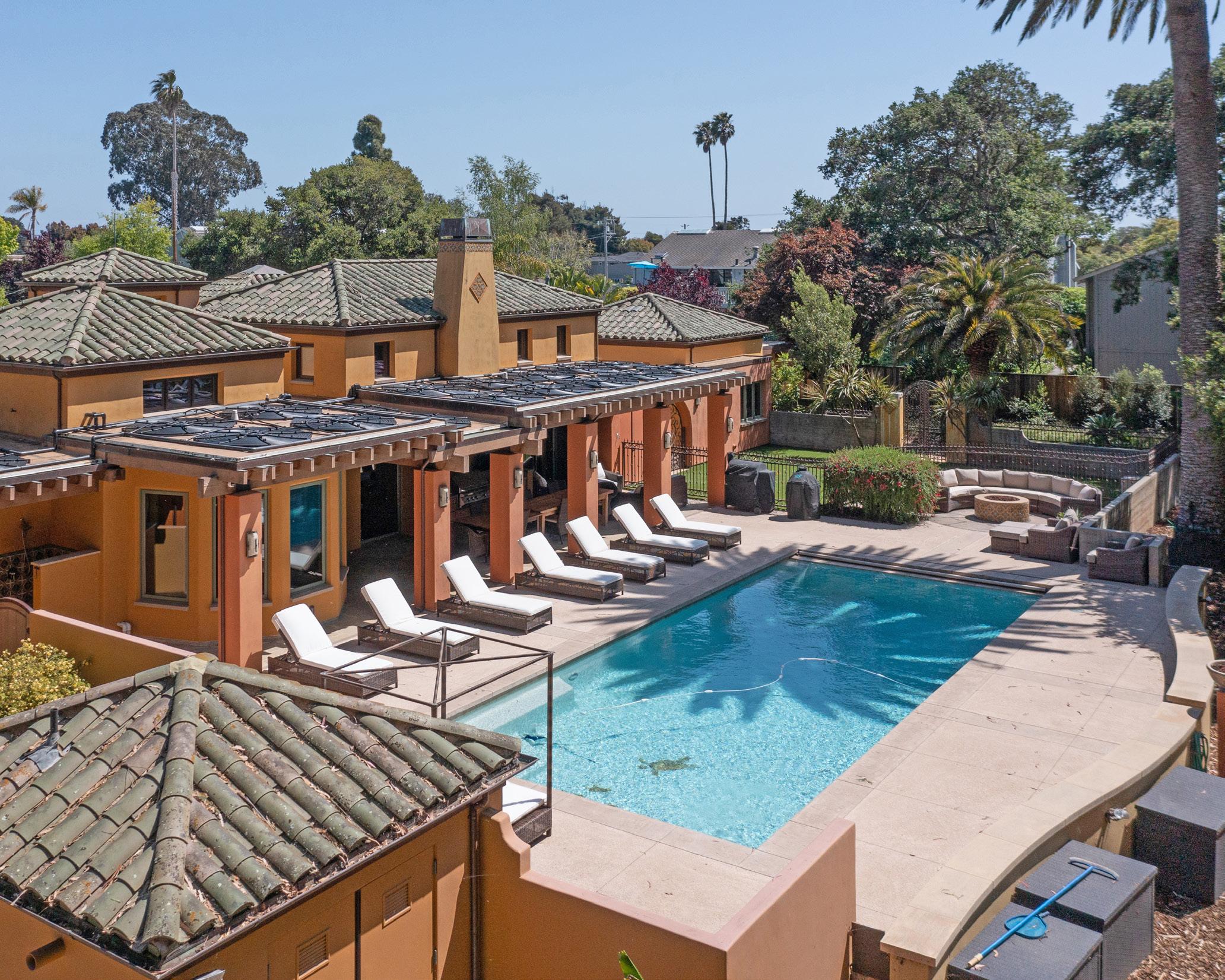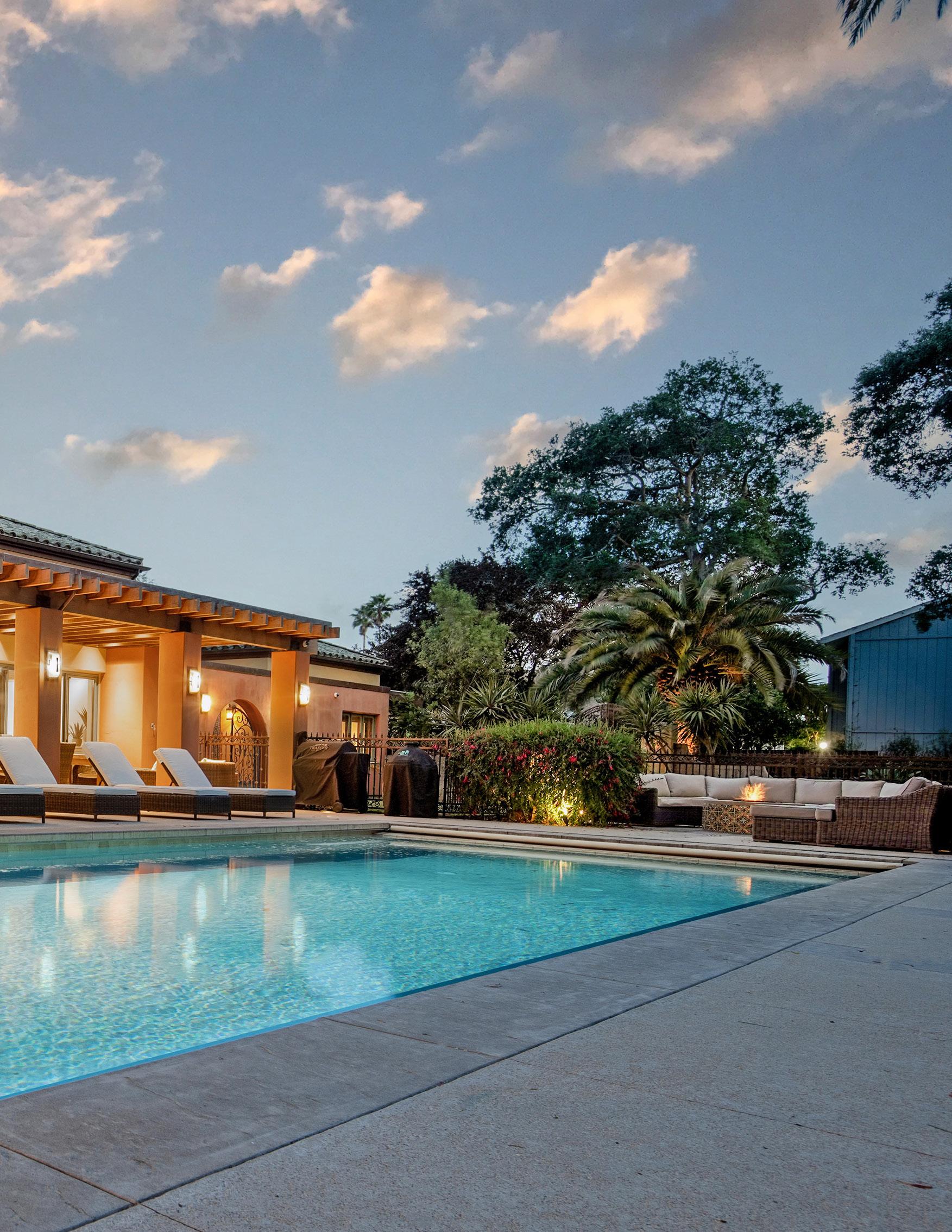 Located on Schwan Lagoon just a short stroll from Santa Cruz’s picturesque beaches, this contemporary Mediterranean masterpiece provides a luxurious oasis you may never want to leave. The single-level home boasts an impressive list of features including 4 bedrooms, 4 full/2 half bathrooms, over 5,200 SqFt of warm, light and bright living space, a full sized swimming pool, jacuzzi, and an elegant primary suite with a stylish bathroom and an incredible walk-in closet. The gourmet kitchen is a chef’s dream, with stateof-the-art appliances, a large island, breakfast bar, coffee bar, and dining area. Other highlights include a 4-car garage, two bonus rooms for home offices or versatile use, full-house generator, beautiful travertine and hardwood floors with hydronic heating, smart home lighting, sound, and security systems, full outdoor kitchen, firepit, fenced dog run, lush gardens, and an expansive yard with plans for a guest house overlooking the lagoon. With easy access to all the wonderful amenities in Santa Cruz, Capitola, and Silicon Valley/ San Francisco to the north, this incredible home is ready for its fortunate new owners to enjoy for years to come.