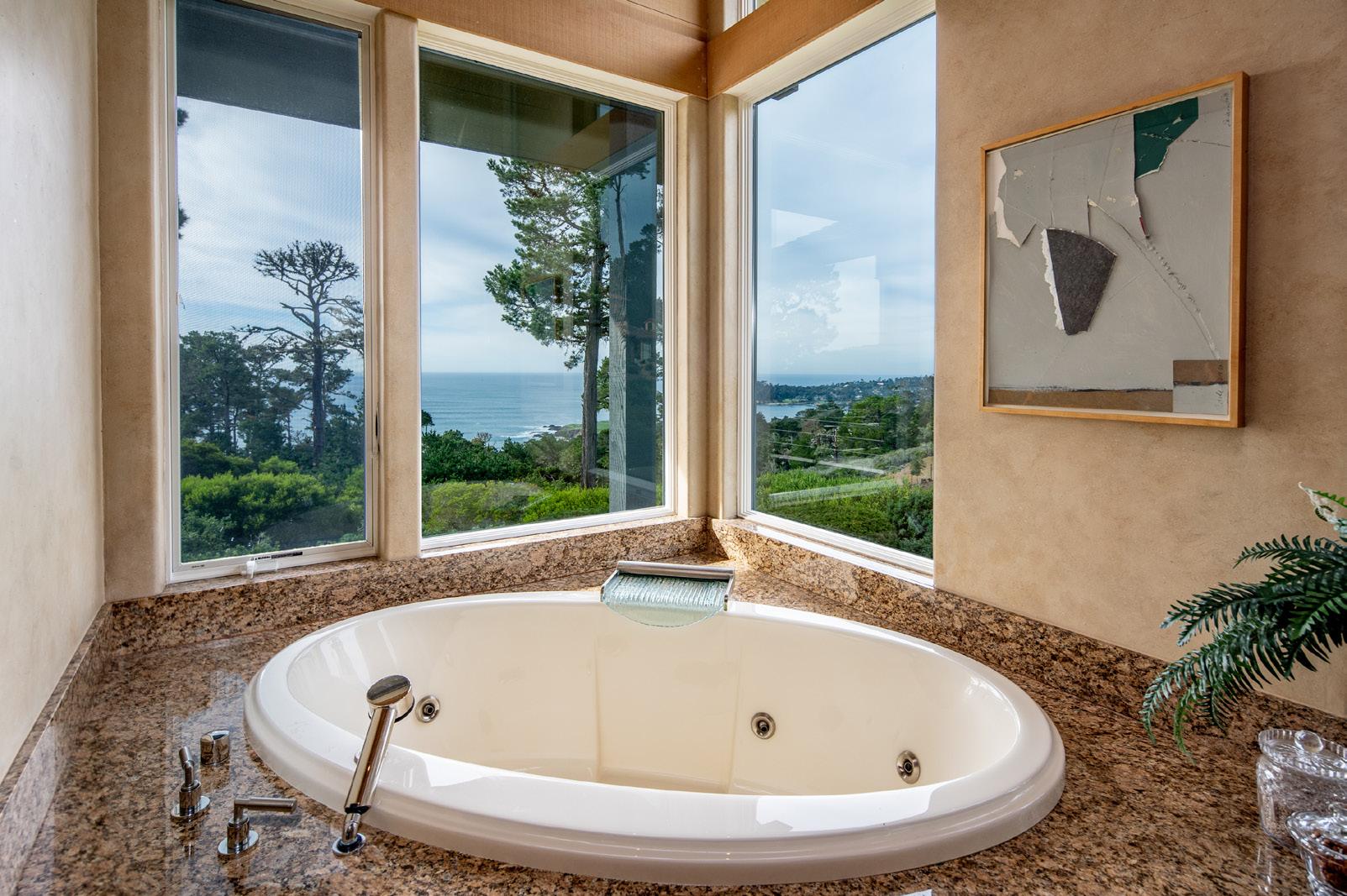 Located in the highly sought-after gated community of Macomber Estates, this architectural masterpiece designed by Charlie Rose features jaw-dropping views of Pebble Beach Golf Course, Stillwater Cove, Carmel Beach, Point Lobos, and the endless Pacific Ocean beyond. The home’s superior quality of construction is evident from the moment you pass through its grand entrance with vaulted ceilings, revealing elegant ridgeline skylights that span throughout the entire main level, beautiful stone and hardwood floors with radiant heat, custom art installations, statues, walls of glass, and expansive balconies all thoughtfully designed to accentuate the unbelievable views. Other highlights include a theater, custom fountain, wine room, two wet bars, new lighting and security systems, and a luxurious primary bedroom suite with a jetted tub to soak in the sunsets. With almost 8,500 SqFt of warm, light, and bright living space, 4 bedroom suites, a 3 car garage, and over 2.7 acres of meticulously manicured grounds, 3230 Macomber Drive offers a Pebble Beach paradise you’ll never want to leave.