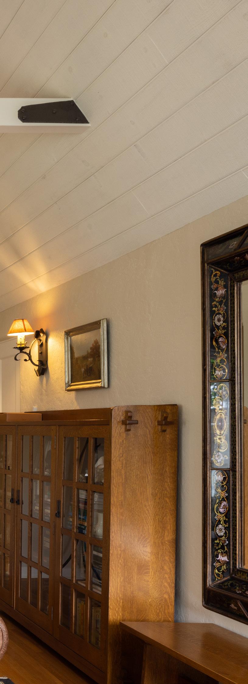 ˏ Copper gutters and downspouts, which feed into underground drainage