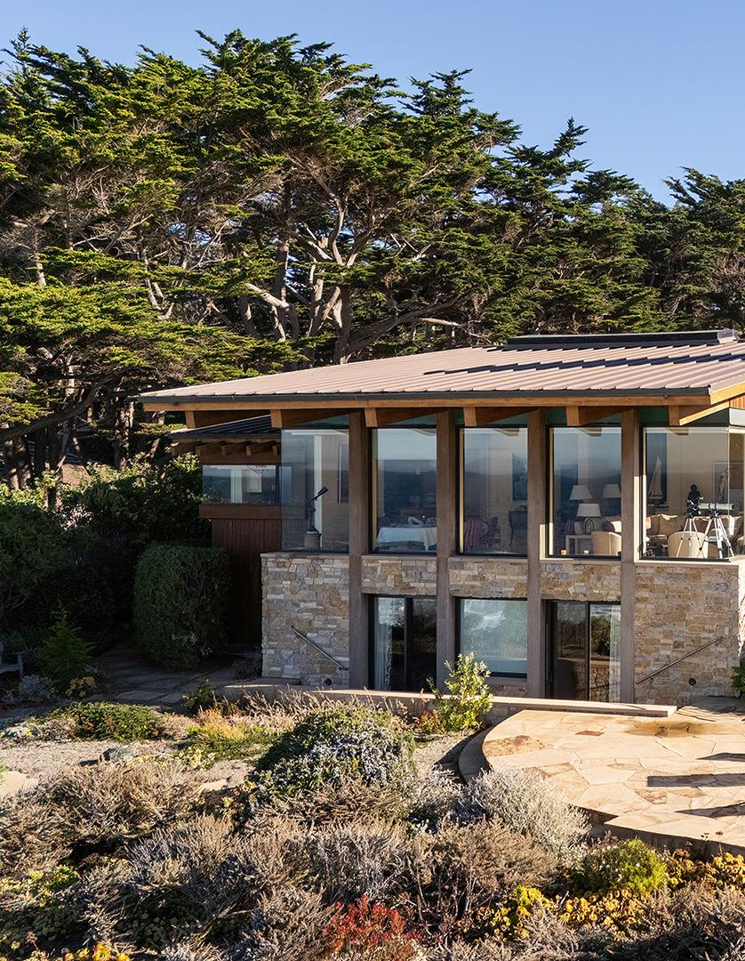 Set along one of California’s most breathtaking coastlines, this oceanfront residence is a masterful blend of site-sensitive architecture, sustainable design, and sweeping Pacific views. Completely reimagined in 2007 by Tobin Dougherty Architects, the 3-bedroom plus den, 4-bath home draws the ocean into nearly every room through expansive windows and open, lightfilled living spaces. Exquisite craftsmanship is showcased in local sandstone, cedar siding, copper detailing, and a standingseam metal roof. Designed for effortless living, the layout places all primary living spaces on the main floor, complemented by a seamless indoor-outdoor flow ideal for both entertaining and quiet reflection. Energy efficient designs ensure year-round comfort. Set on a half-acre in the coveted Yankee Point enclave, this serene retreat offers privacy, poetic views, and refined coastal living just minutes from Carmel-by-the-Sea.