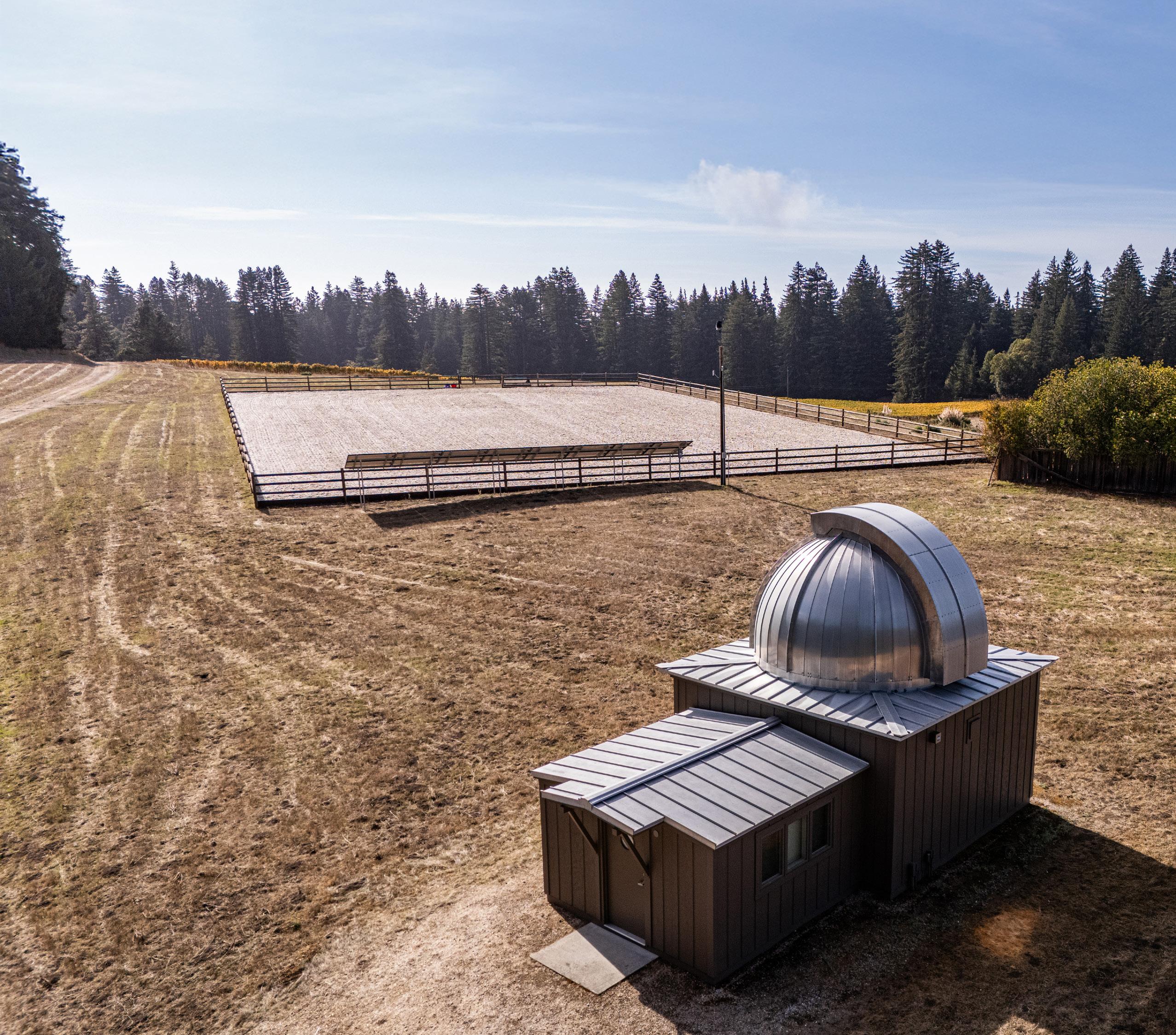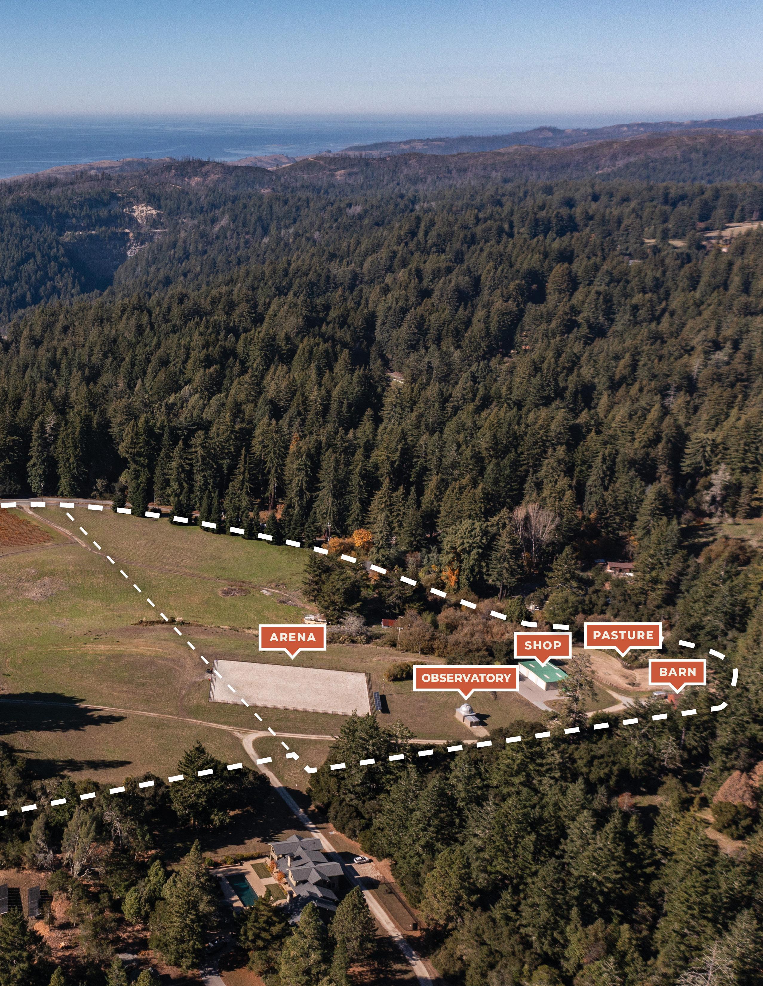 Spanning 55 acres of highly usable land across two parcels, this property offers endless opportunities for viticulture, equestrian pursuits, or a private retreat. The award-winning 20-acre Pinot Noir vineyard with 4 distinct clones provides the option to continue farming, lease the land, or build your own winery. Equestrian amenities include a 6-stall barn with a wash area, tack room and bathroom, 4 paddocks, a pasture, and a 25,000 SqFt sport arena with all-weather footing. A private astronomical observatory allows for stargazing and imaging opportunities under Bonny Doon’s famously clear skies. The property also includes a 2,400sf shop with an auto lift and solar with battery storage, a private well, and an impressive 25,000 gallons of water storage. Ideally situated near Santa Cruz, the property offers effortless access to beaches, hiking and biking trails, and a thriving coastal community. Permitted for a caretaker’s unit (1,024 square foot garage with 640 square foot dwelling unit above) or a larger 5,000 sf horse barn.
