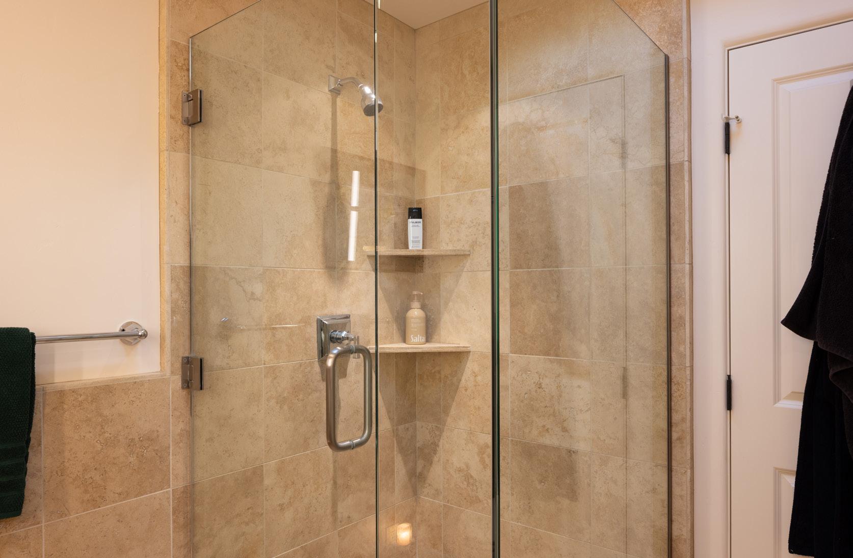 ű Primary shower with overhead spray and separate hand held spray plus corner seat
