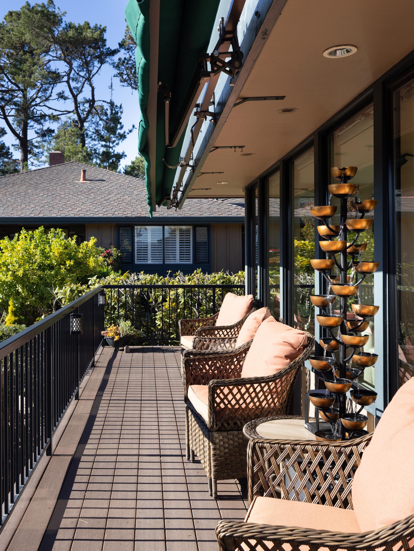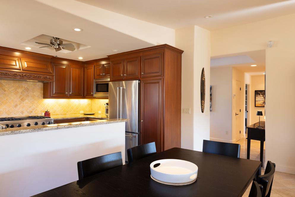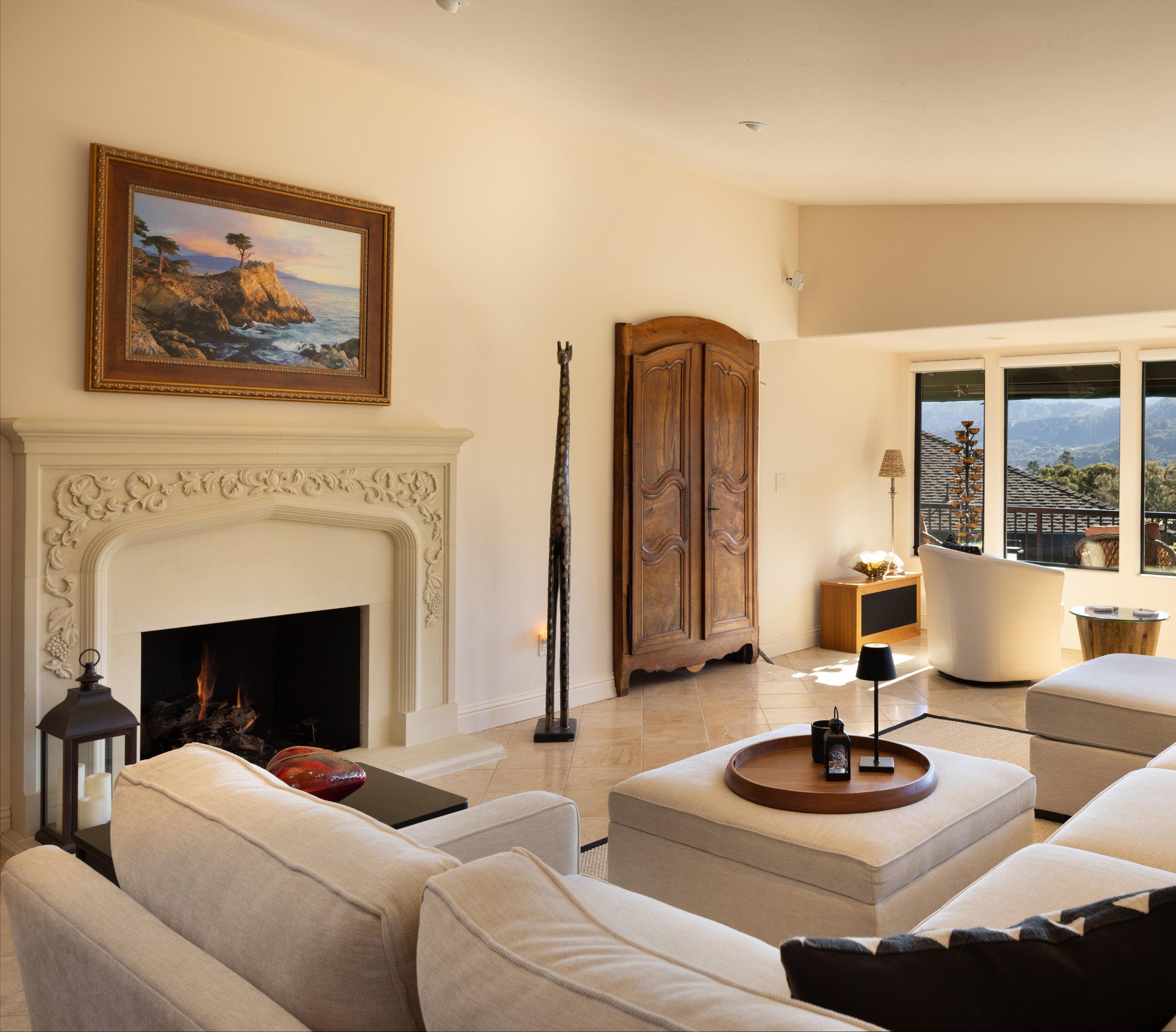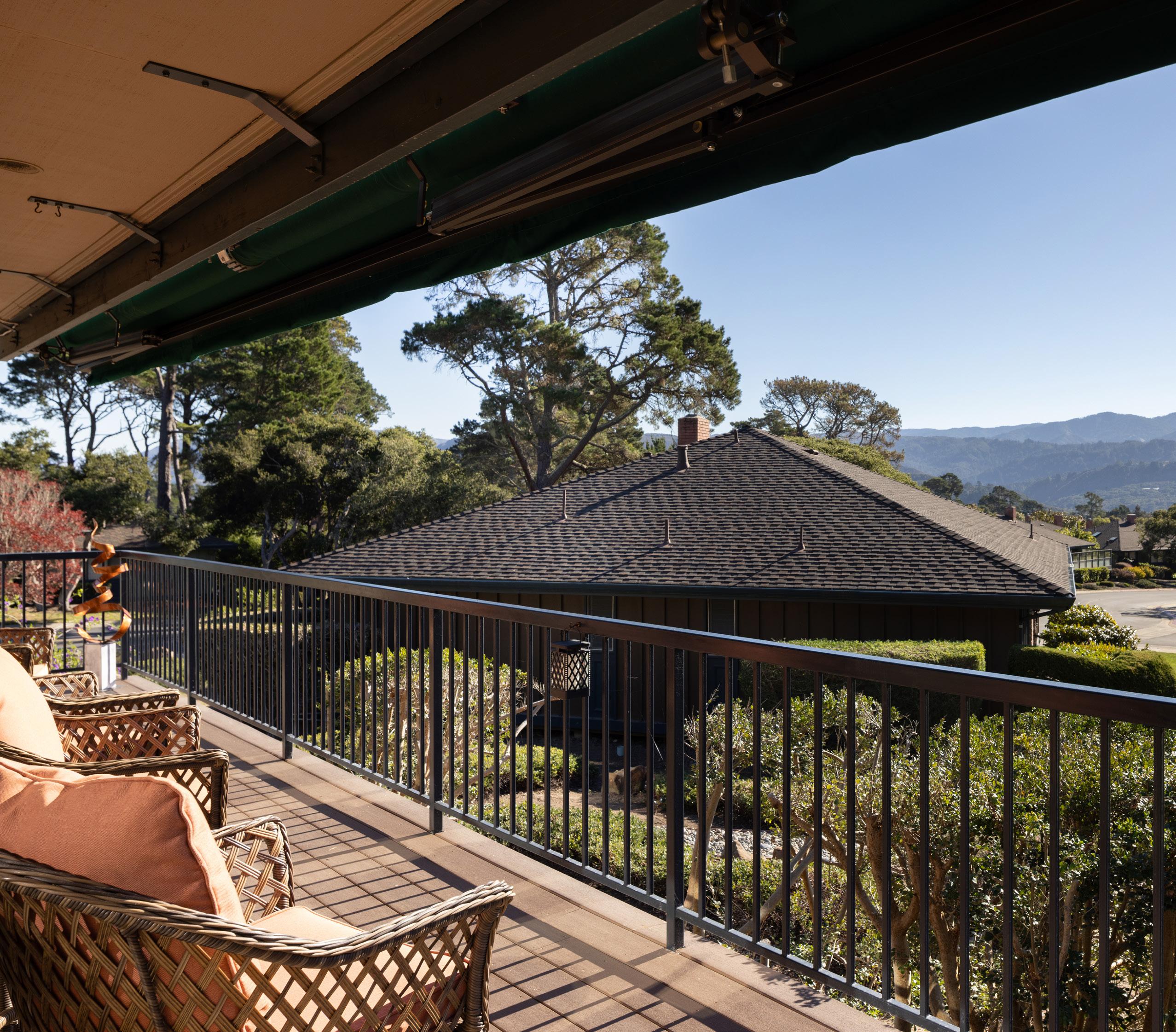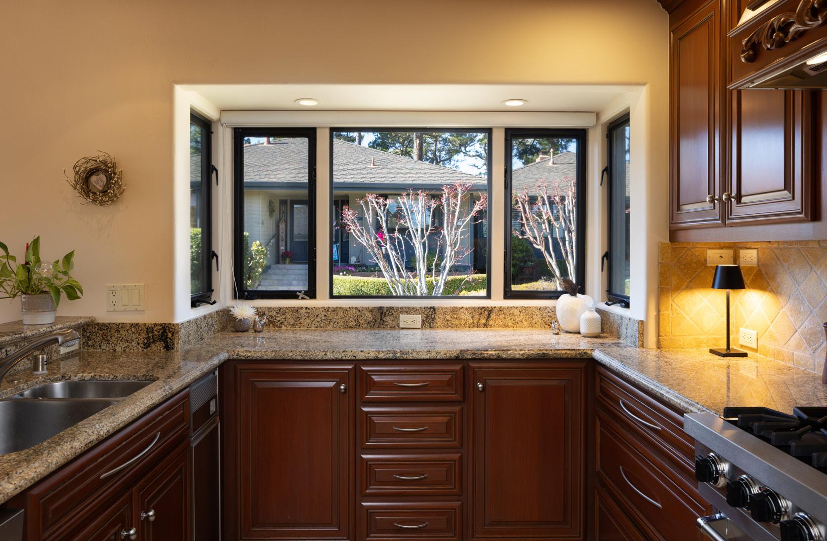 Nestled in a tranquil setting within one of California’s most soughtafter 55+ communities, this beautifully upgraded 1,667 SqFt residence sits just steps from the clubhouse and premier amenities. Thoughtfully remodeled in 2005, the home features beautiful mountain views and highquality finishes, including thin-wall plaster, travertine flooring, radiant heat, Milgard windows, and a custom marble and granite fireplace. The kitchen features granite counters, tumble marble backsplash, premium appliances including a Viking range with two ovens, a double sink, and cherry cabinetry with rollout drawers. The living area includes Bose surround sound and a custom TV niche framed with antique French walnut doors, and opens onto a deck with mountain views. The expanded primary suite offers a walk-in closet, cherry vanity, and a travertine shower with overhead and handheld sprays, a corner seat, and a heated towel bar. The guest room doubles as an office with walnut cabinetry and a queen Murphy bed. Additional features include skylights, Hunter Douglas Silhouette shades, extensive custom cabinetry, attic storage, and a one-car carport. Del Mesa residents enjoy a clubhouse, restaurant, indoor pool, active community programs, and HOA dues conveniently cover most individual utilities.