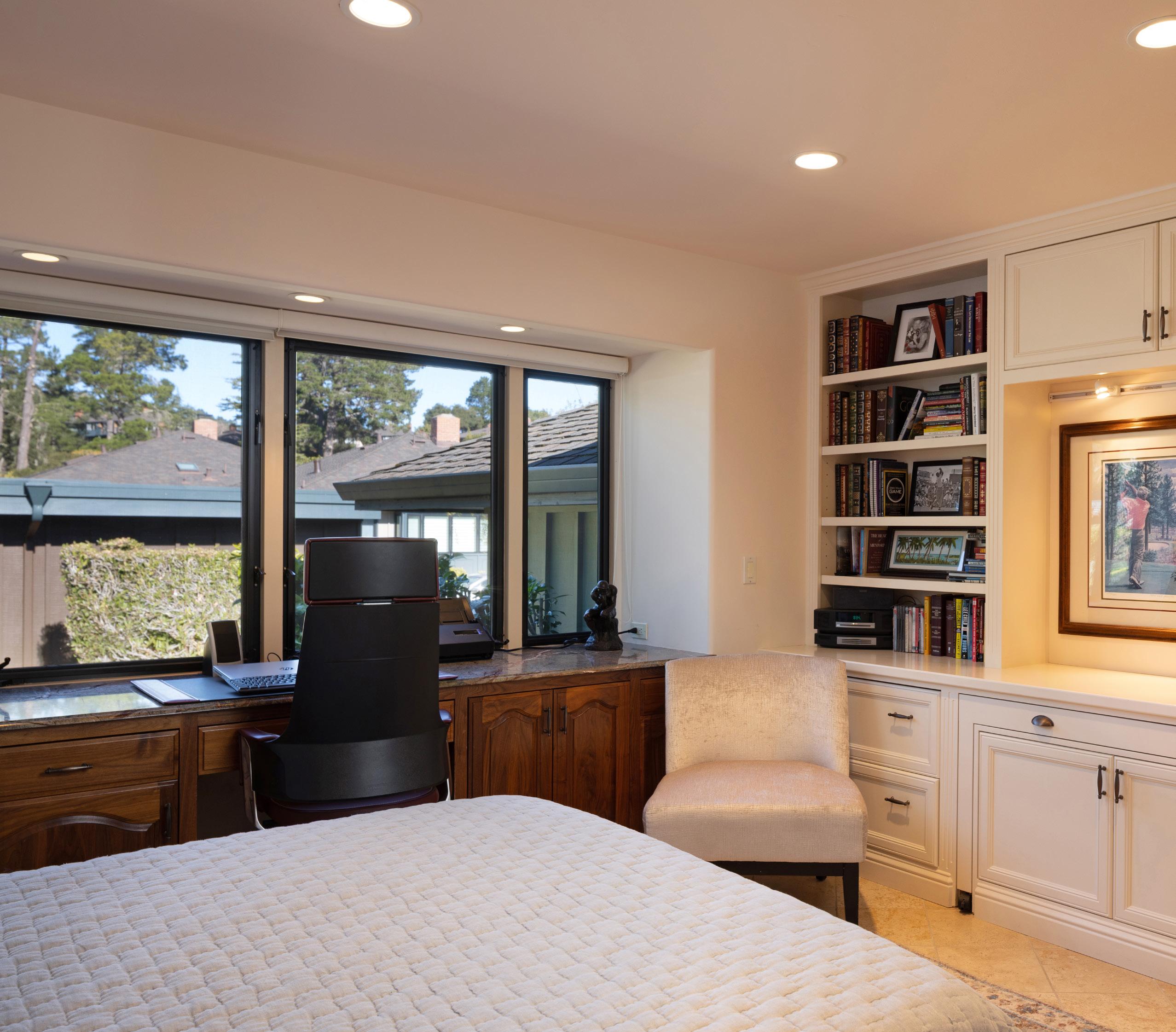 • Queen size Murphy bed installed in guest bed/ office area. Includes overhead lighting and light switch inside bed unit.