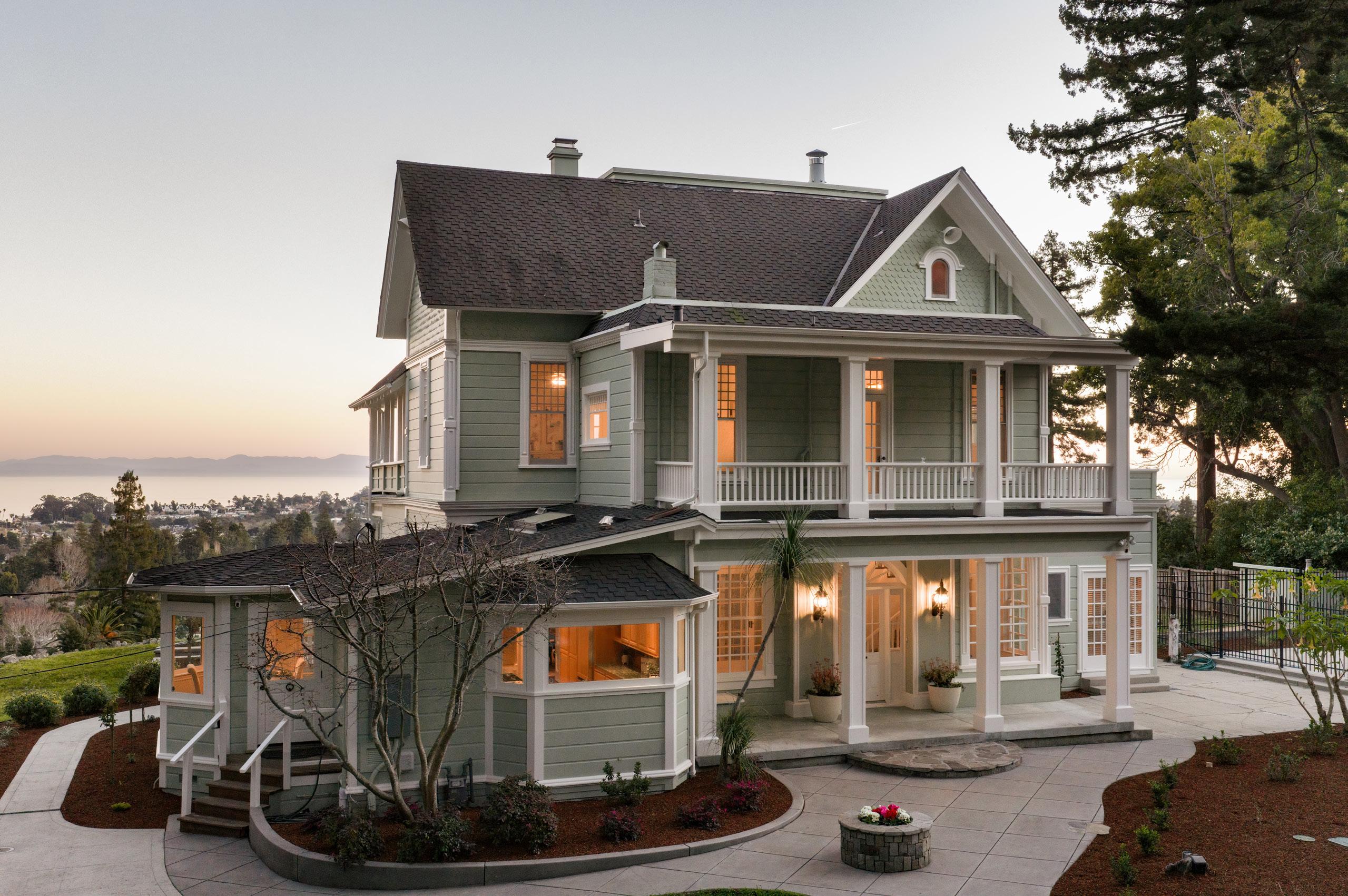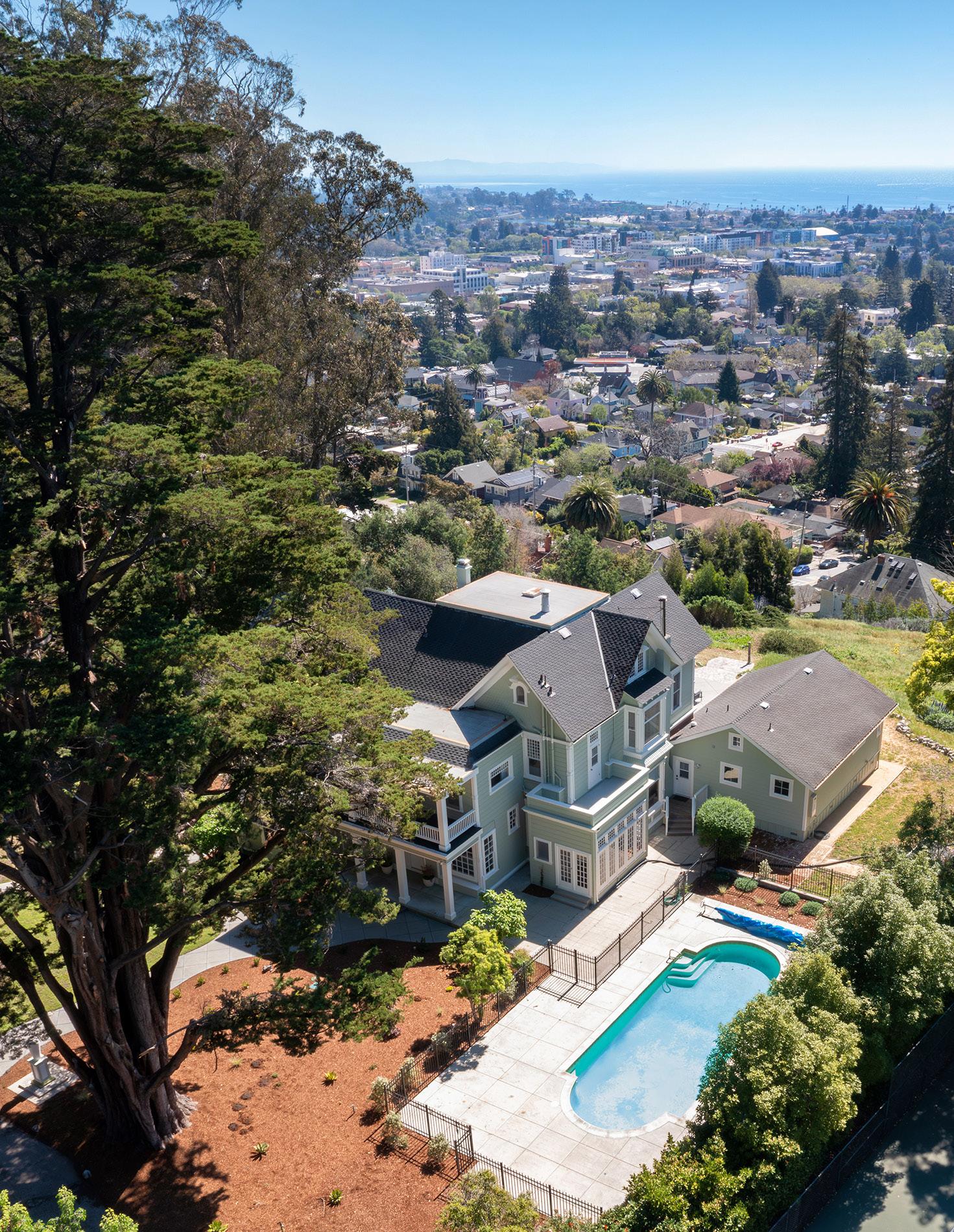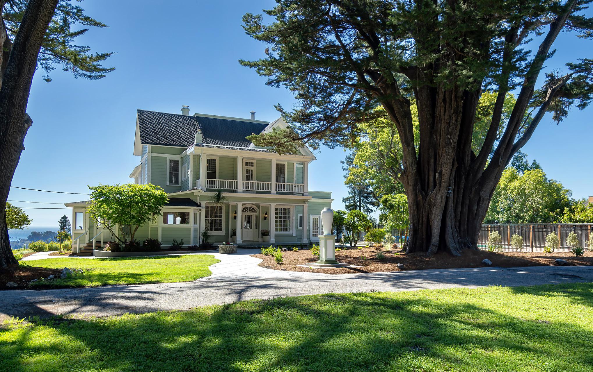 Perched above Santa Cruz with sweeping ocean views, 535 Highland Avenue is the iconic Torchiana Estate, also known as Villa Fair View. Recognized with a Santa Cruz Historical Society plaque dating to 1886, this beautiful Victorian residence is a storied local landmark. A gated entry reveals ~3.42 acres of lush, park-like grounds surrounding the ~5,949 sq ft, 8-bedroom home. Inside, a checkerboard-tile entry introduces formal dining and living spaces, including a living room with an ornate carved fireplace and a cozy library. Douglas Fir floors, clawfoot bath tubs, stained glass window and countless charming details reflect the home’s 19th-century origins. A thoughtful 2010 addition includes a private ~900 sq ft caretaker’s unit, while the expansive primary suite offers two walk-in closets. Amenities include a pool, balcony, deck, 3-car garage, and a patio overlooking the entire bay. Historically associated with Dr. Henry A. van Coenen Torchiana, noted as the Consul General of the Netherlands, and later home to the Adrian Dominican Sisters, Villa Fair View is deeply woven into Santa Cruz history. From its elevated vantage point, the Pacific Ocean unfolds as a dramatic backdrop, offering stunning views and timeless character.