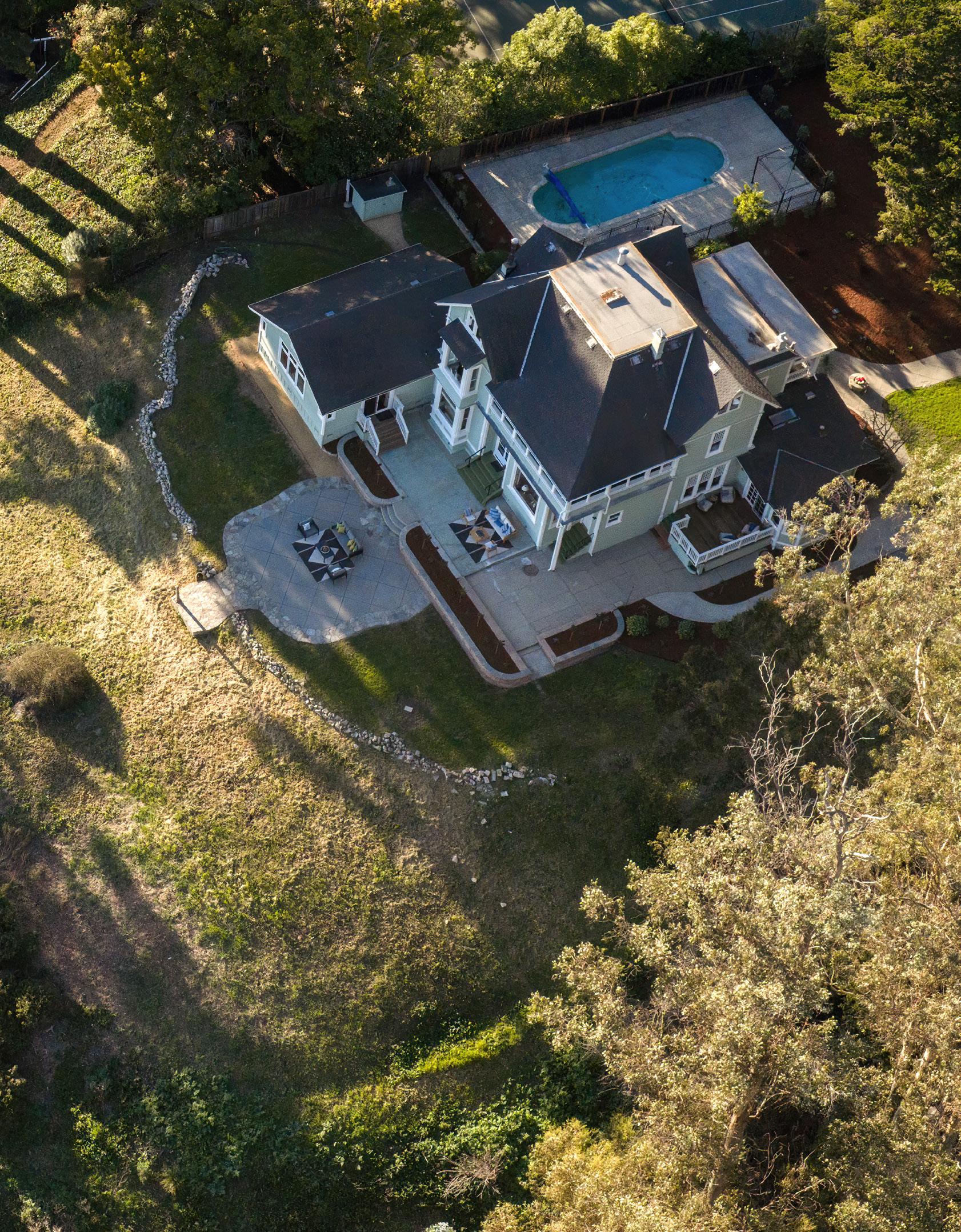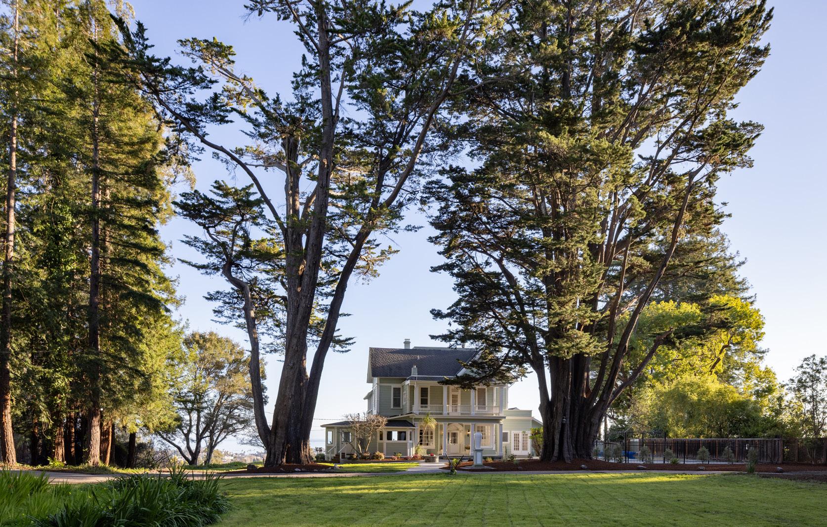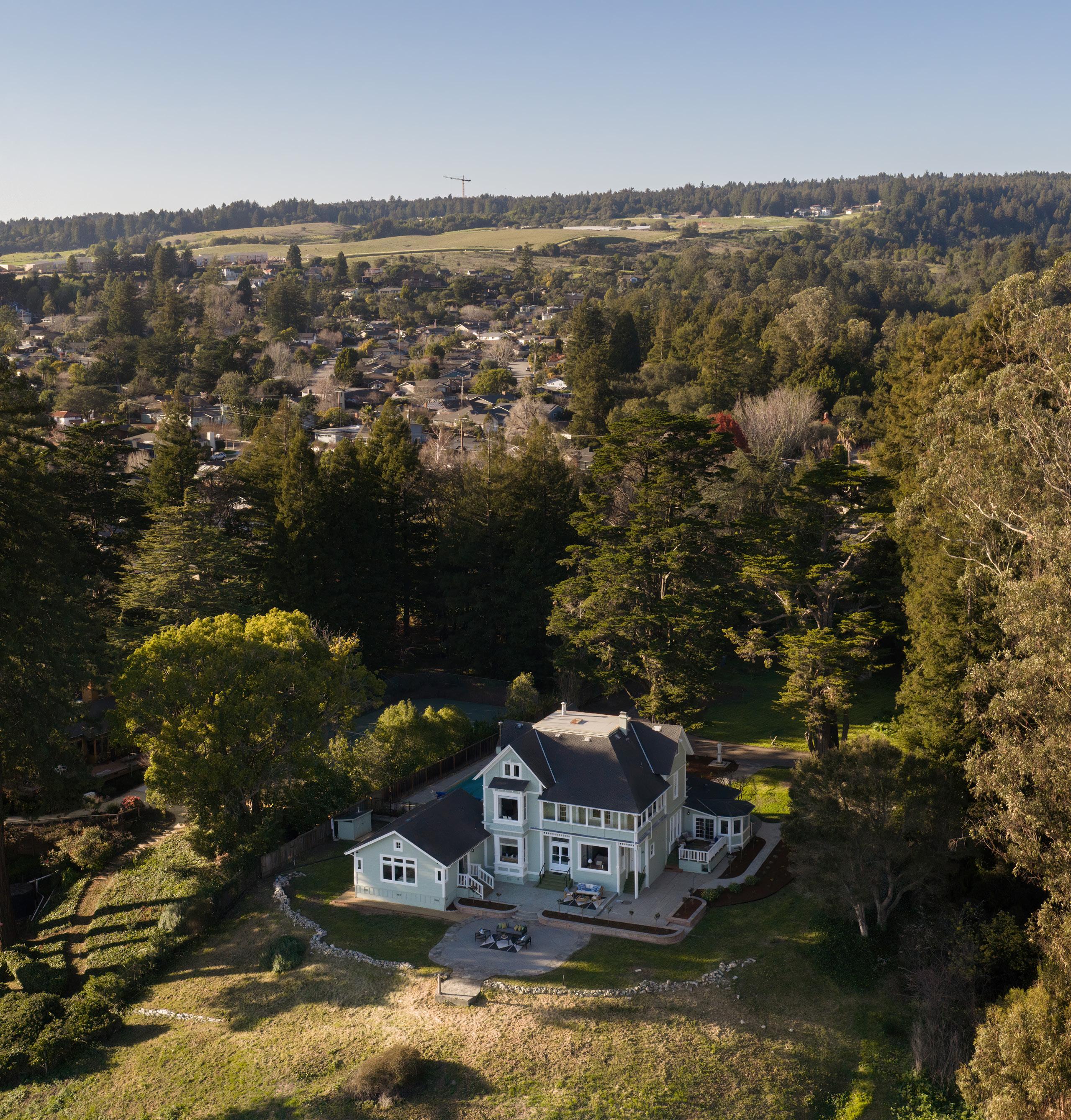 Perched above Santa Cruz with sweeping ocean views, 535 Highland Avenue is the iconic Torchiana Estate, also known as Villa Fair View. Recognized with a Santa Cruz Historical Society plaque dating to 1886, this beautiful Victorian residence is a storied local landmark. A gated entry reveals ~3.42 acres of lush, park-like grounds surrounding the ~5,949 sq ft, 8-bedroom home. Inside, a checkerboard-tile entry introduces formal dining and living spaces, including a living room with an ornate carved fireplace and a cozy library. Douglas Fir floors, clawfoot bath tubs, stained glass window and countless charming details reflect the home’s 19th-century origins. A thoughtful 2010 addition includes a private ~900 sq ft caretaker’s unit, while the expansive primary suite offers two walk-in closets. Amenities include a pool, balcony, deck, 3-car garage, and a patio overlooking the entire bay. Historically associated with Dr. Henry A. van Coenen Torchiana, noted as the Consul General of the Netherlands, and later home to the Adrian Dominican Sisters, Villa Fair View is deeply woven into Santa Cruz history. From its elevated vantage point, the Pacific Ocean unfolds as a dramatic backdrop, offering stunning views and timeless character.