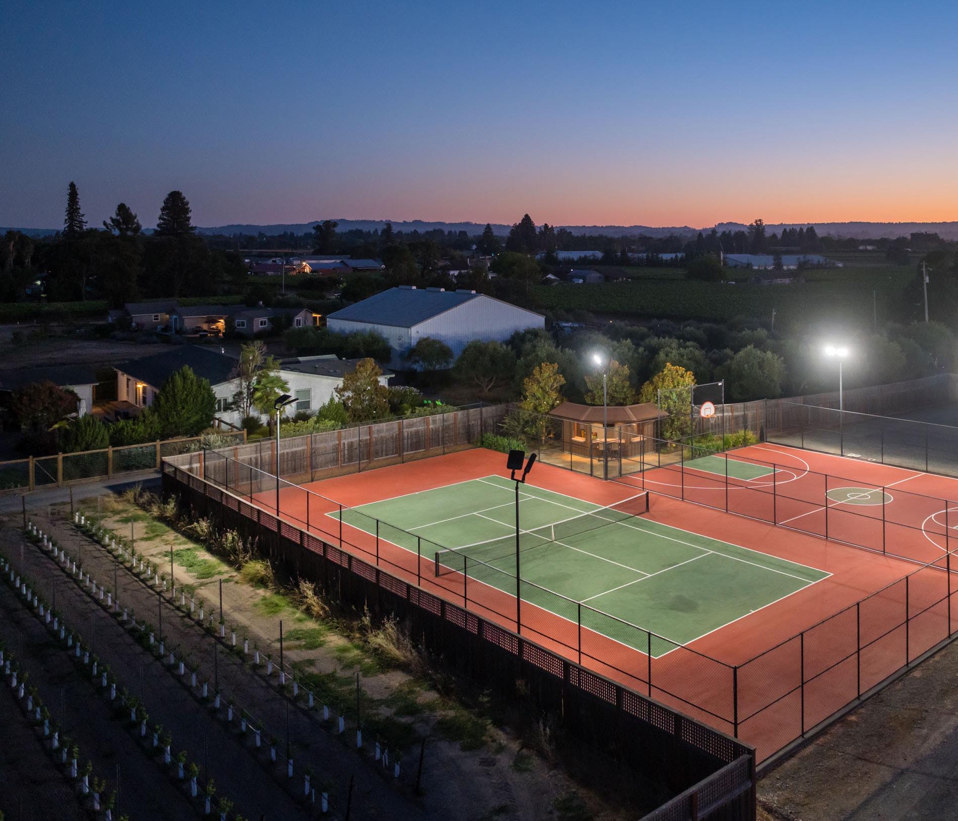 Experience the epitome of Wine Country living at 1626 Abramson Road in Santa Rosa’s coveted Russian River Valley AVA. This private gated estate spans 10 acres of rolling vineyards and resort-style amenities designed for relaxation and entertaining. The beautifully remodeled main residence blends modern elegance with timeless warmth, offering light-filled living spaces, a chef’s kitchen, three bedrooms, and an elevator. A charming carriage house adds flexibility for guests or extended stays. Outdoors, indulge in a resort-like pool with waterslide, poolside outdoor kitchen, lighted tennis and basketball courts with a courtside bar, and expansive patios with sweeping vineyard views. Perfectly situated near world-class wineries, dining, and the best of Sonoma County, this property offers a rare opportunity to own a turn-key Wine Country compound that truly has it all: luxury, leisure, and lifestyle.