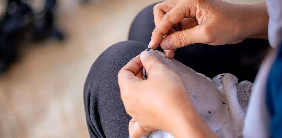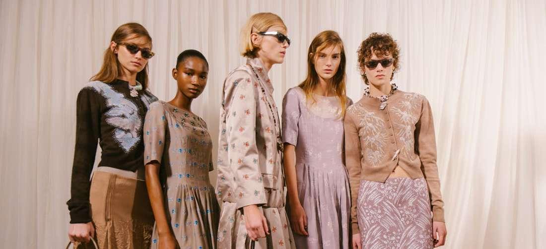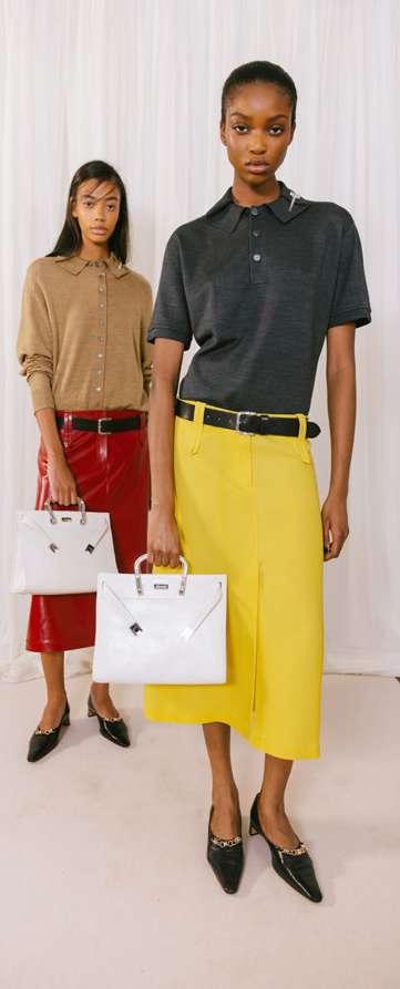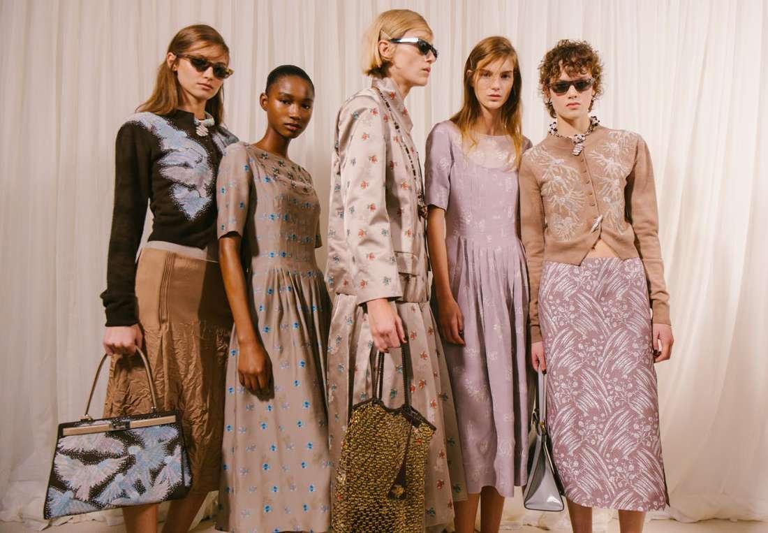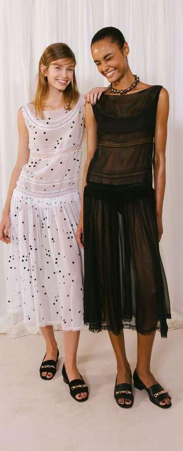 with perfection. Frayed edges were artfully engineered to remain intact, sheer polos were delicately “mended” with seed beads, and silk chiffon was meticulously hand-pleated and viscose was hand-smocked. Embellishment took centre stage, with cardigans and mesh dresses entirely stitched by hand and monogram embroidery referencing antique samplers, each representing a member of Burch’s design team.