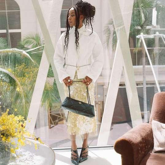 Cierra Nia Wright is a Los Angeles-based influencer who is known as “simply.cie” on Instagram, where she covers fashion and travel, and inspires followers with fresh looks that fuse sophisticated silhouettes with striking streetwear. Here she wears a Tory Burch Spring/Summer 2025 collection ensemble, with the Kira Diamond Quilt East-West Shoulder Bag.