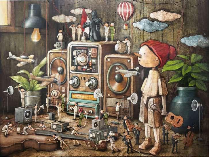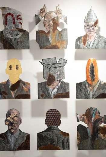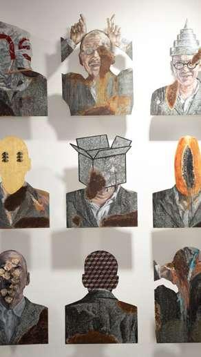 4. Agus Suwage, “Self Portrait and the Theatre Stage,” 2019-2020, 0il and mixed media on zinc, mounted on aluminium, 60 pcs, approx. 480 x 600 cm