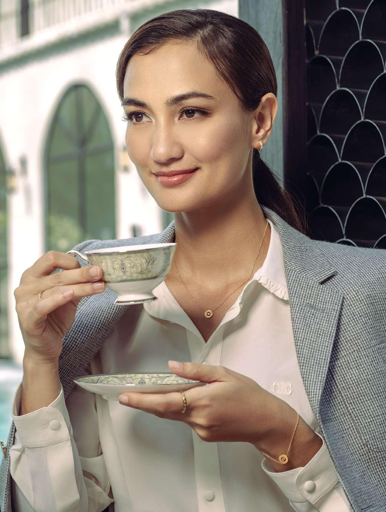 Turning 50, Dewi speaks of legacy instead of ambition. Success, she says, is no longer measured by milestones, but by creating with honesty, serving what inspires her, and accepting imperfection as part of the craft. She believes beauty lies in consistency; in showing up, failing, refining, and beginning again. Dewi wears the Chopard Happy Sport.