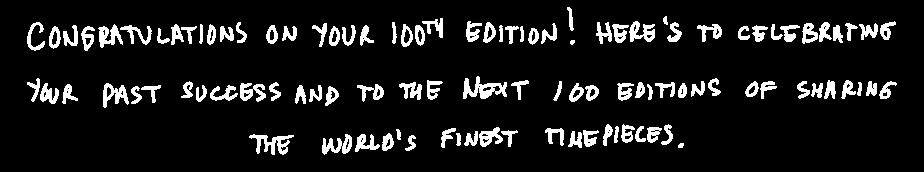 As the year comes to a close, we are happy to end 2025 with the 100th edition of The Time Place Magazine. Join us in celebrating this momentous achievement with well wishes from some of our most trusted and valued brand partners. On the cover of this celebratory issue is the Hublot MP-17 Meca-10 Arsham Splash Titanium Sapphire. A sculptural piece inspired by flowing water, the watch is a 99-piece limited edition borne out of the exclusive collaboration between Hublot and American contemporary artist, Daniel Arsham. Discover this work of art in our cover feature entitled, “The Stillness of Motion.”