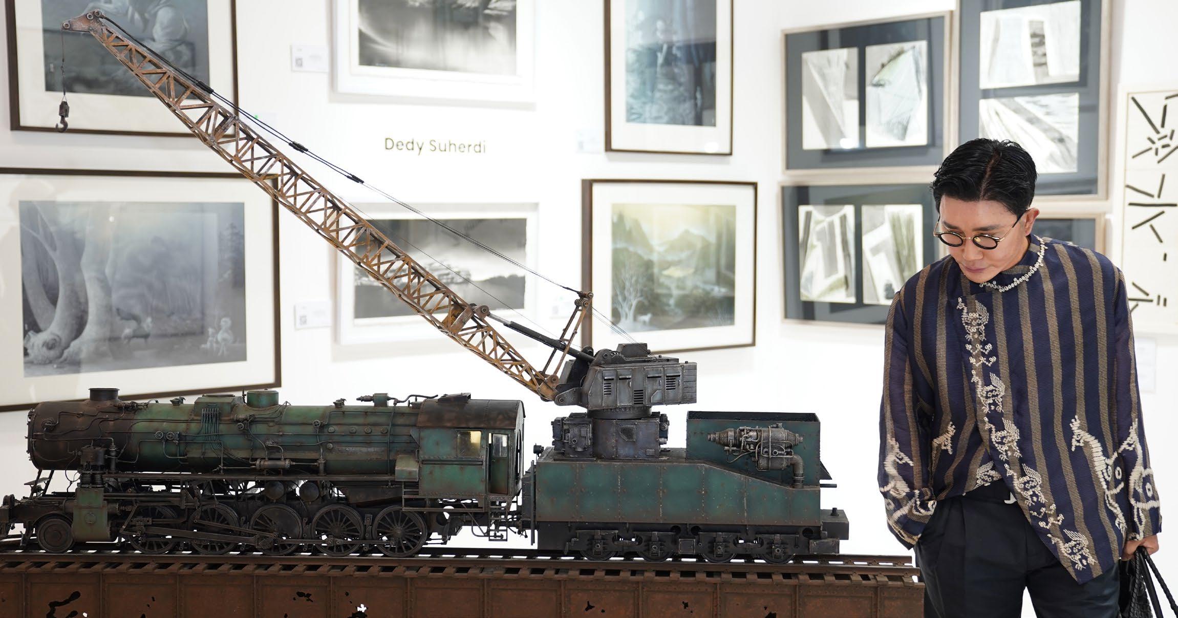 Fitri DK expands this resistance through a series of powerful works inspired by the Kendeng farmers’ protests against cement mining. She showcased three artworks: “Mantra Ibu Bumi,” which reminds viewers that environmental damage has consequences; “Selamatan Bumi,” which is inspired by Kupatan Kendeng, a Javanese ritual of apology to the Earth; and lastly, “Tenda Perjuangan,” a life-sized batik tent, recalling the protest camps set up by villagers.