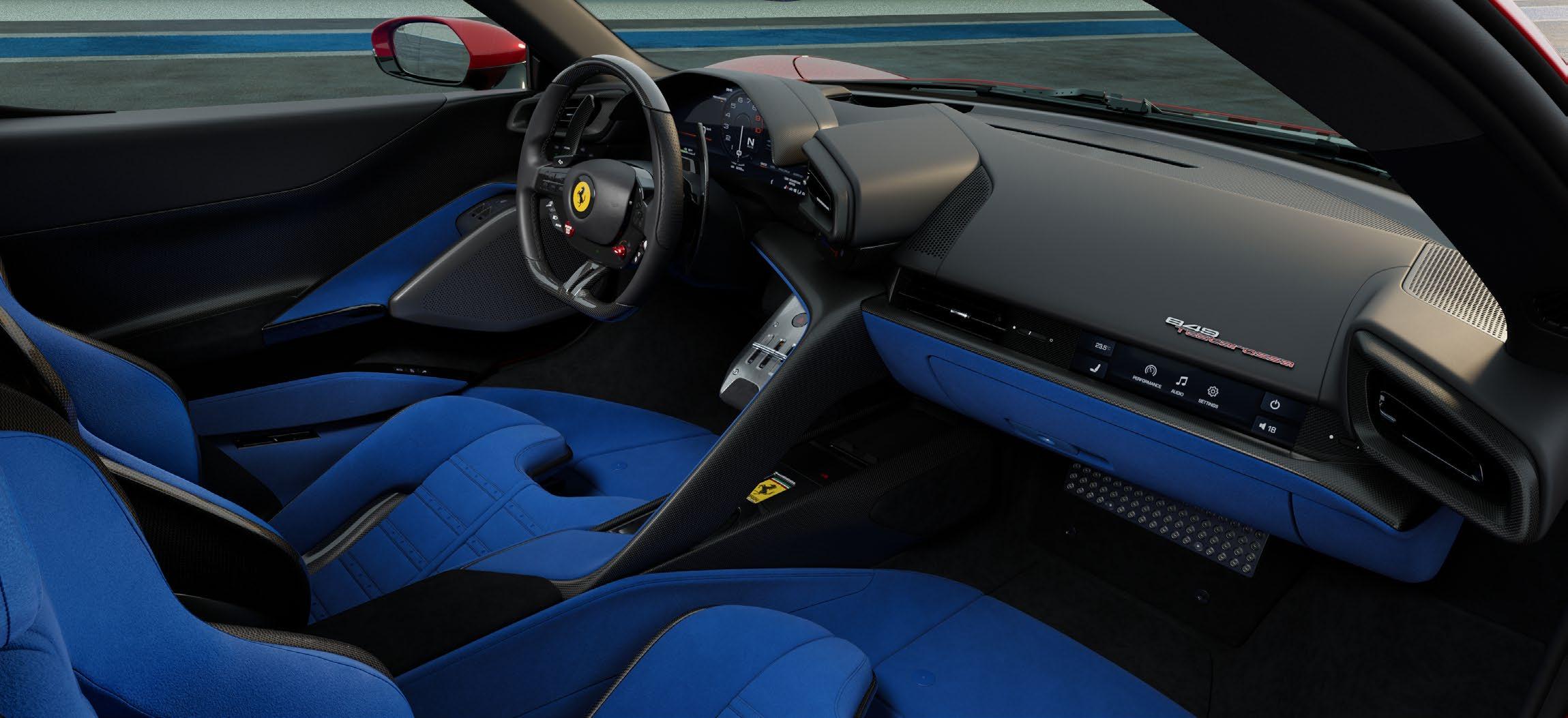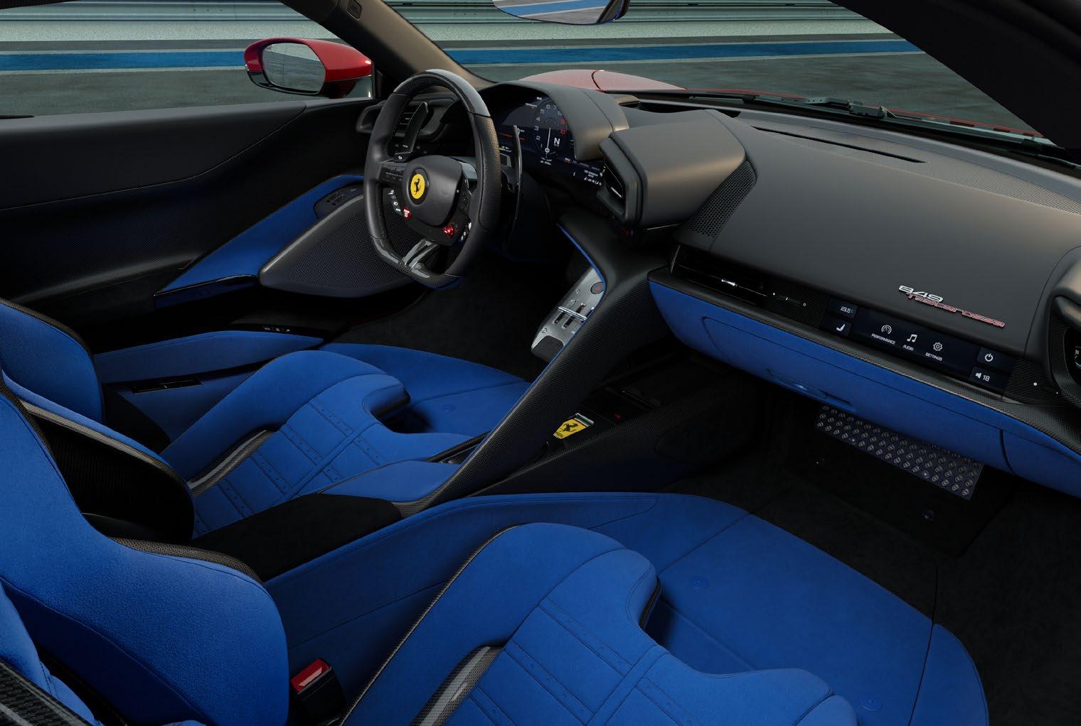 4. Unmistakably Ferrari, the cockpit features a central sail crowned by a gated gear selector inspired by the F80 concept
