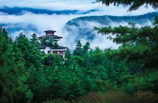 5. COMO Uma Paro main building is nestled in a forested area surrounded by trees and nature