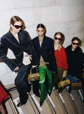 Familiar silhouettes are reinterpreted through sculpting, tailoring and twisting. Luxurious materials are purposefully raw-cut and weathered, dresses are worn backwards, pleated skirts are slightly askew, logos hang off bags