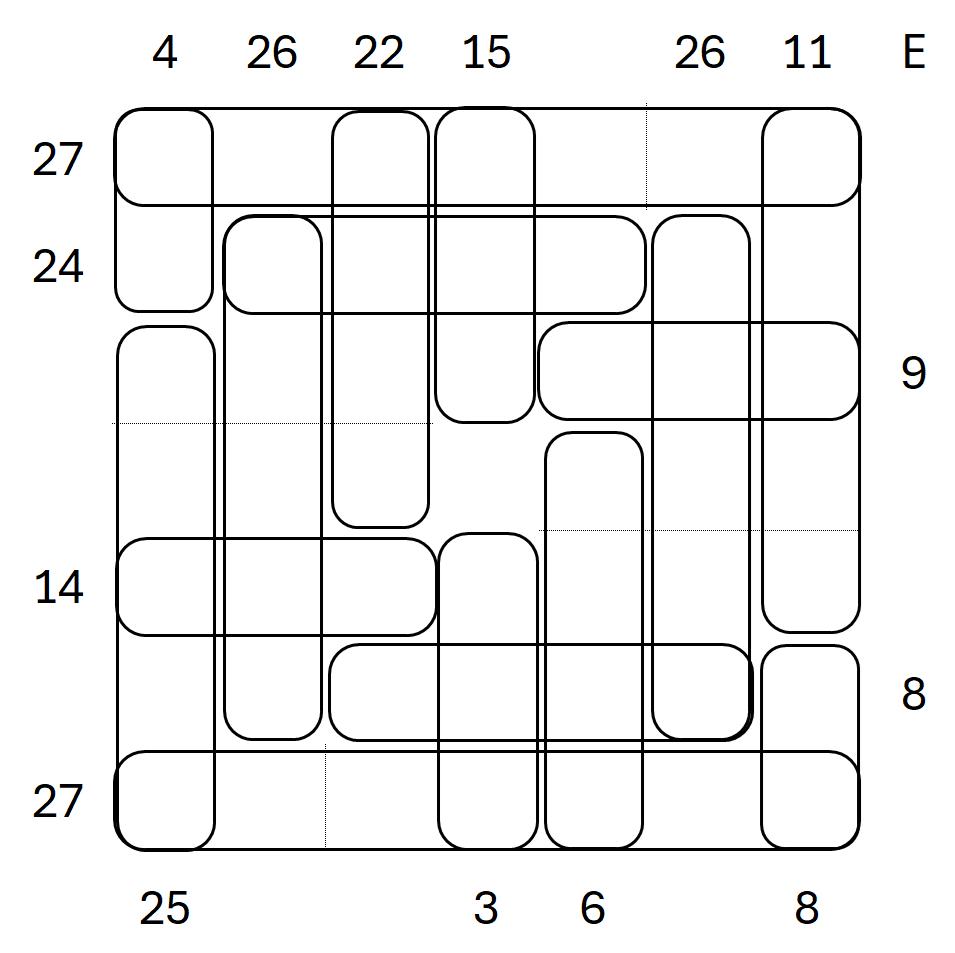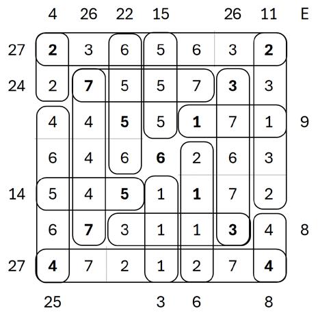 • The numbers in each rectangle must add up to the total shown on the edge of the grid.