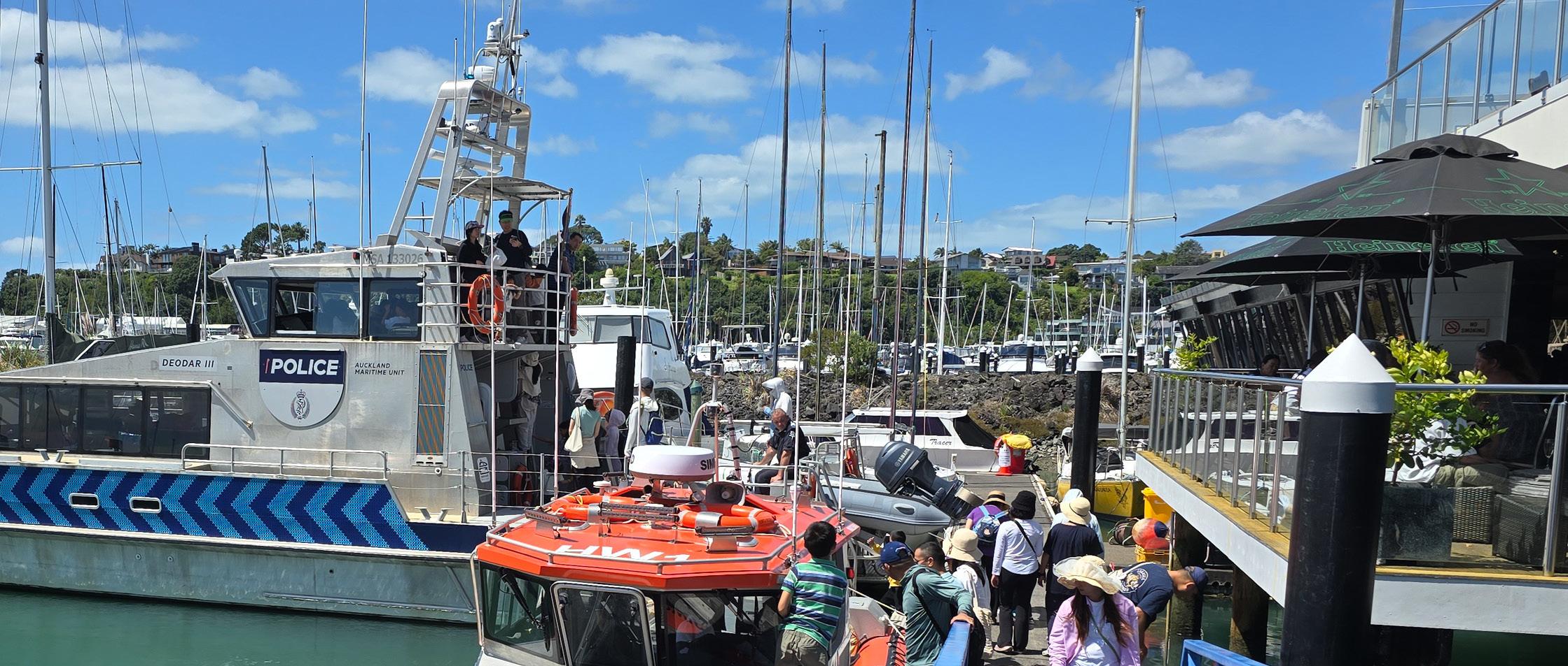 Among the people and vessels at the Bucklands Beach Yacht Club’s (BBYC) recent public Open Day was an 18.5-metrelong twin-hulled boat staffed by members of the Auckland Police Maritime Unit.
