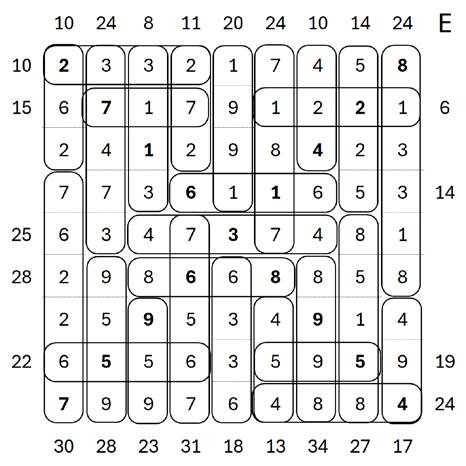 • The numbers in each rectangle must add up to the total shown on the edge of the grid.